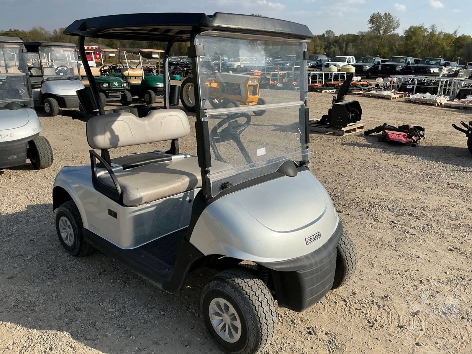 EZ GO GOLF CART, ELECTRIC, SILVER, 2 SEAT, CANOPY, WINDSHIELD, PLUG IN CHARGER ****NO TITLE, BILL OF SALE ONLY****