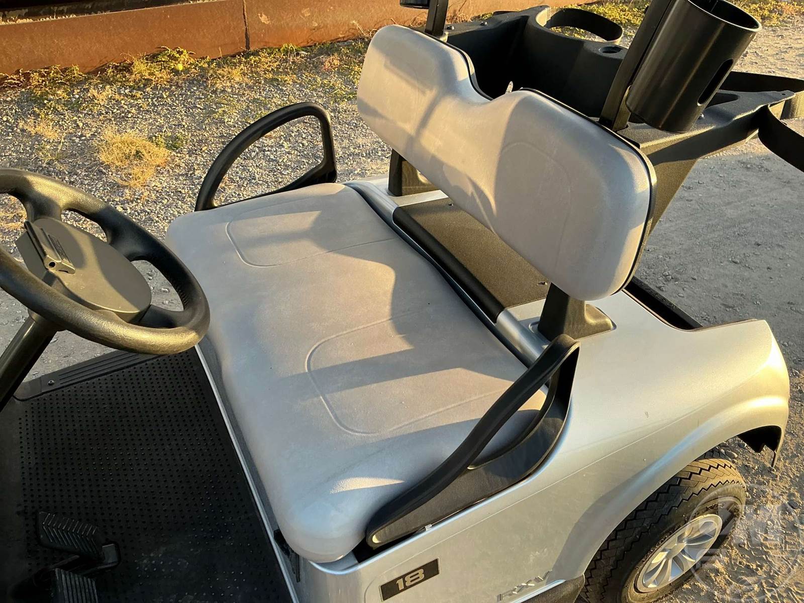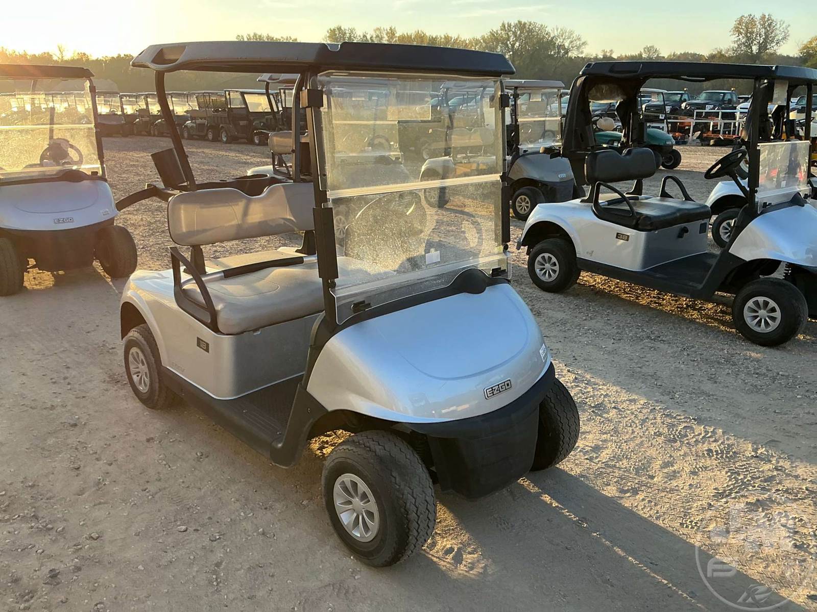 EZ GO GOLF CART, ELECTRIC, SILVER, 2 SEAT, CANOPY, WINDSHIELD, PLUG IN CHARGER ****NO TITLE, BILL OF SALE ONLY****
