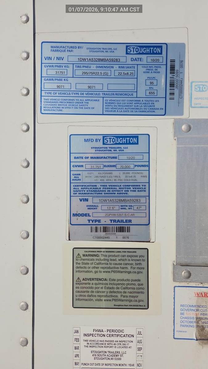 2021 Stoughton Dry Van Trailer - Swing Door, Air Ride, Sliding Axle