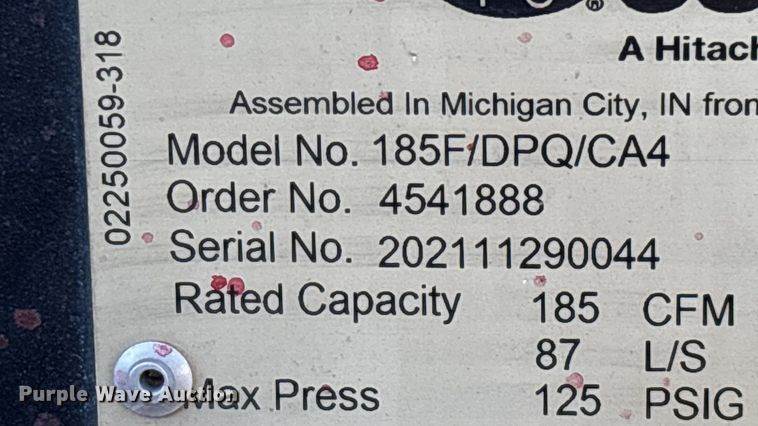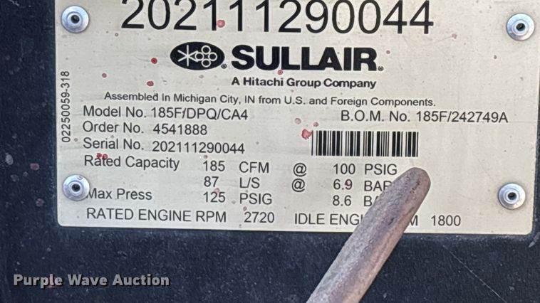 2021 Sullair 185F/DPQ/CA4 air compressor