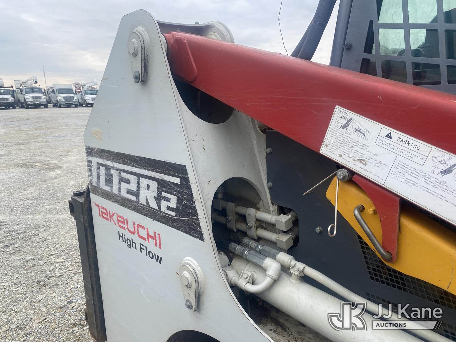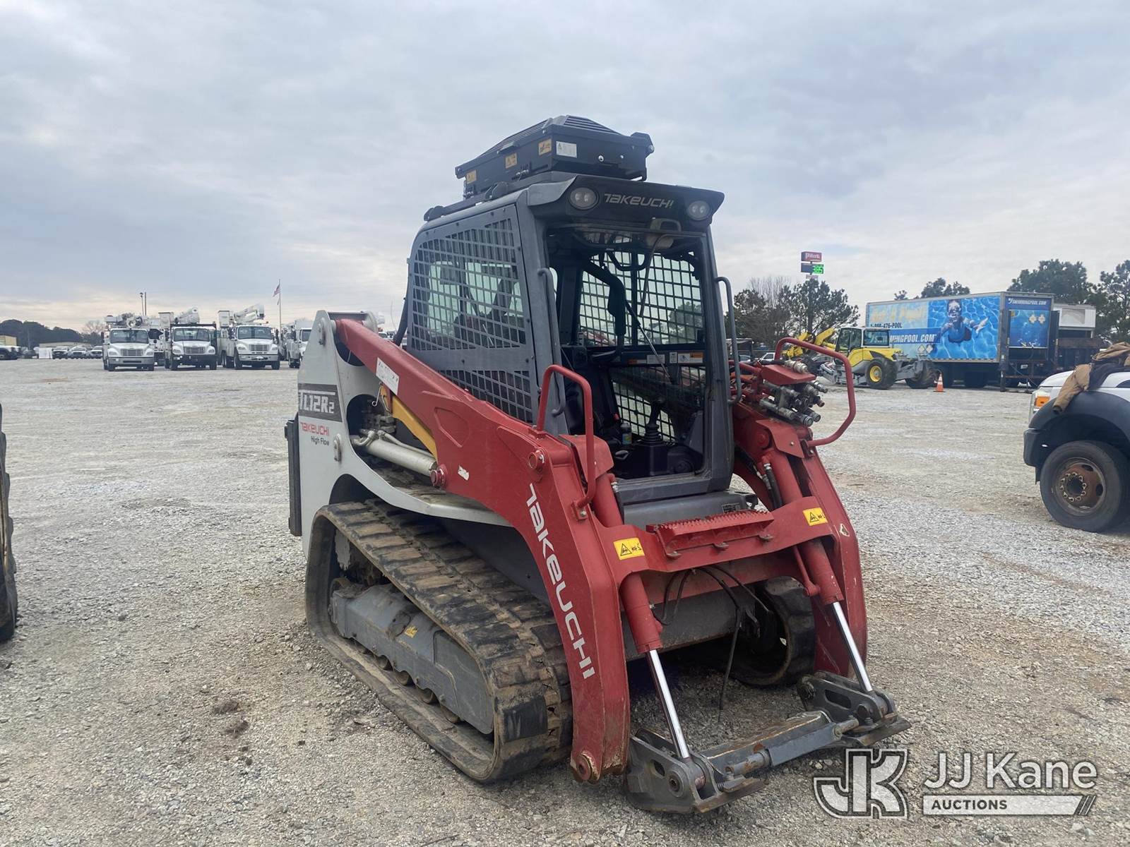 2021 Takeuchi TL12R2 High Flow Crawler Skid Steer Loader, s/n 412104196, Kubota diesel, Hydrostatic, with rubber tracks, aux hydraulics, rear winch & EROPS w/A/C, (Not Running, Condition Unknown, No Bucket, No Key) (Seller States: Major Engine And Hydraulic Repairs Needed) NOTE: This unit is being sold AS IS/WHERE IS via Timed Auction and is located in Villa Rica, GA. Inspection & preview days for this unit are the 2 business days prior to the first day of items closing for this auction, item is located at 100 Liberty Rd Villa Rica, GA 30180 and hours of operations are 8a-4p. For pre-sale questions, please contact Office Staff @ (470) 590-8453. (Buyer is responsible for removal. Assistance by consignor or JJ Kane Auctions is not assured.)