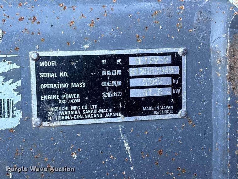 2021 Takeuchi TL12V2 tracked skid steer loader