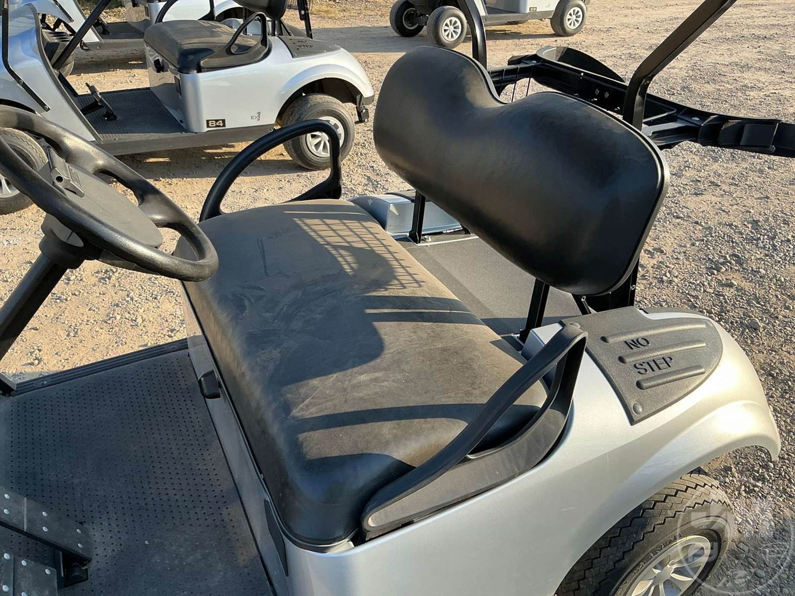 EZ GO GOLF CART, GAS, SILVER, 2 SEAT, CANOPY, WINDSHIELD ****NO TITLE, BILL OF SALE ONLY****