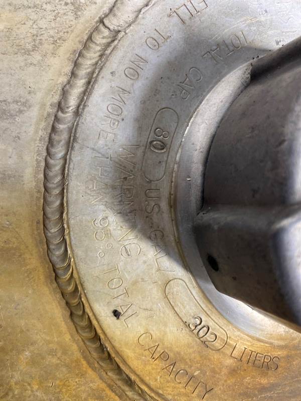 Used Cascadia 126 LH Fuel Tank, Side: Driver, 80 Gallons, Length: 35.50", Height: N/A, Material: Aluminum, Steps: No, Shape: Round