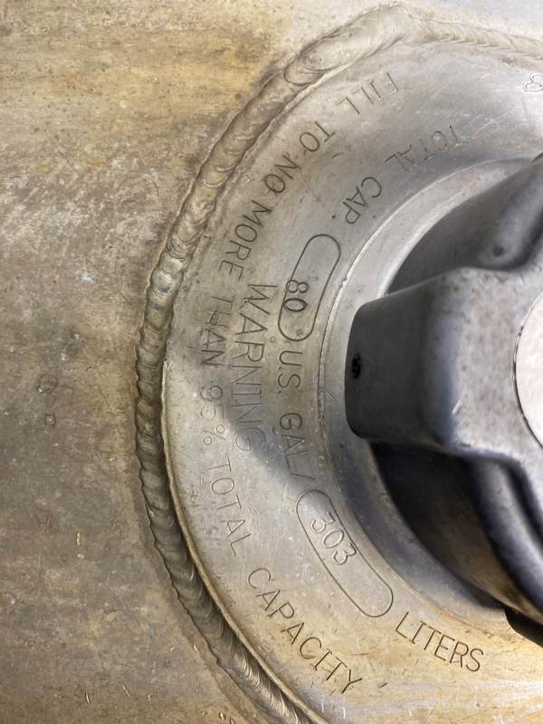 Used Cascadia 126 LH Fuel Tank, Side: Driver, 80 Gallons, Length: 35.50", Height: N/A, Material: Aluminum, Steps: No, Shape: Round