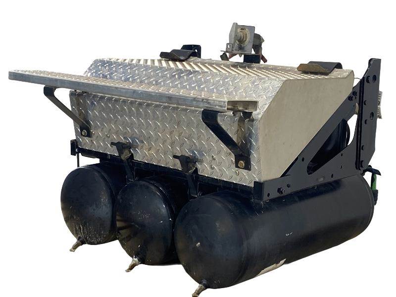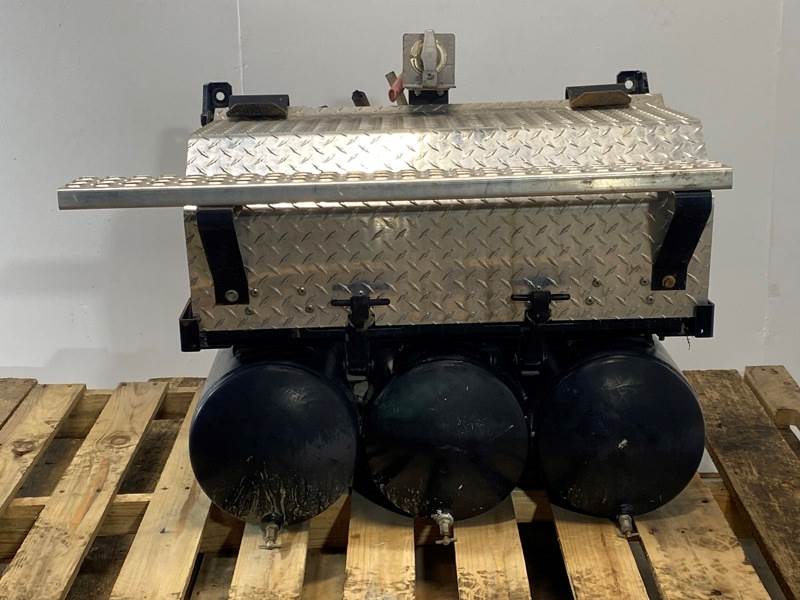Used VNR Battery Box, Side: Driver, Tray Material: Steel, Battery Capacity: 4, Width: 30.50", Height: 12.00", Steps: Yes, Latch/Strap: Strap