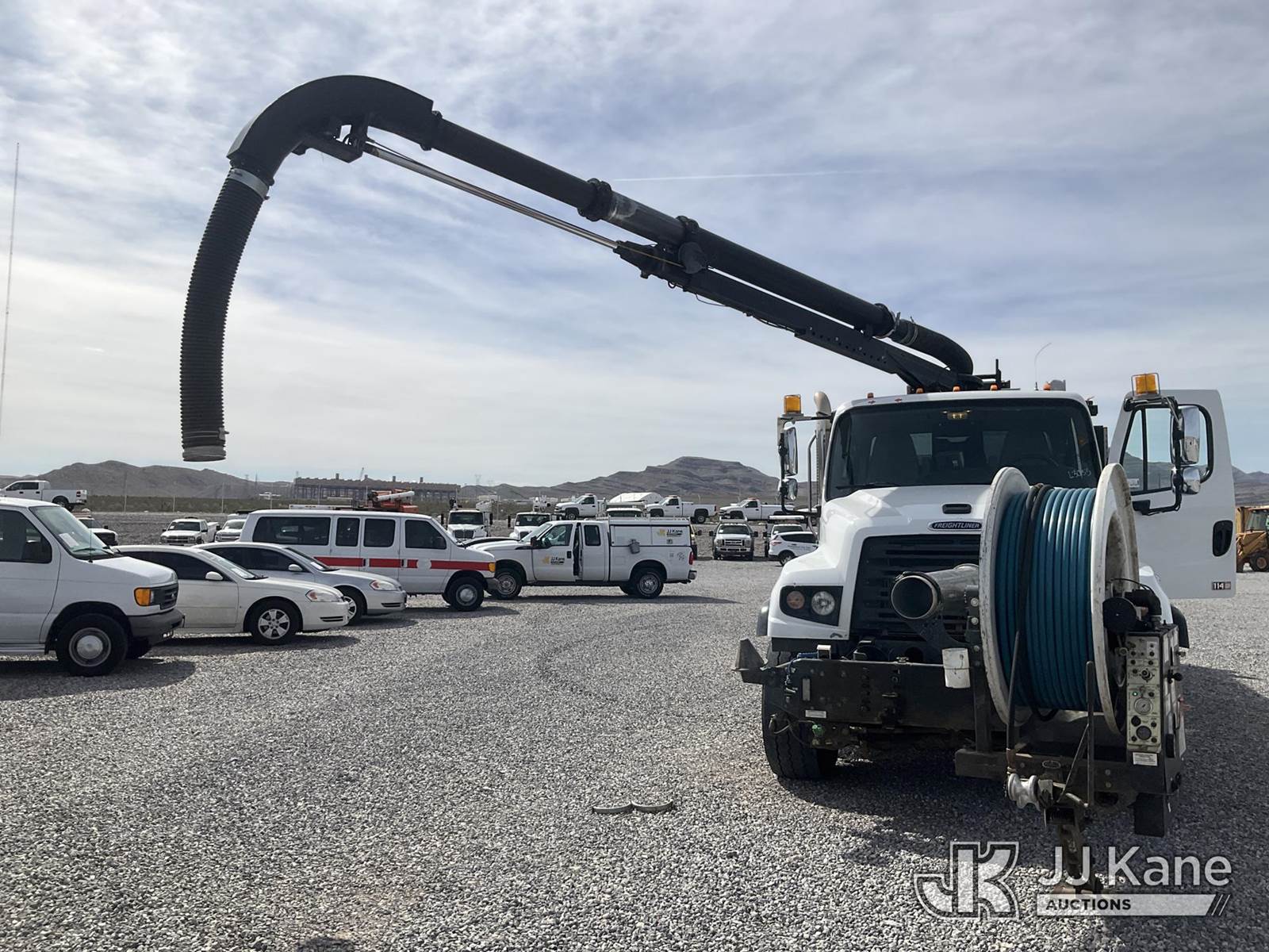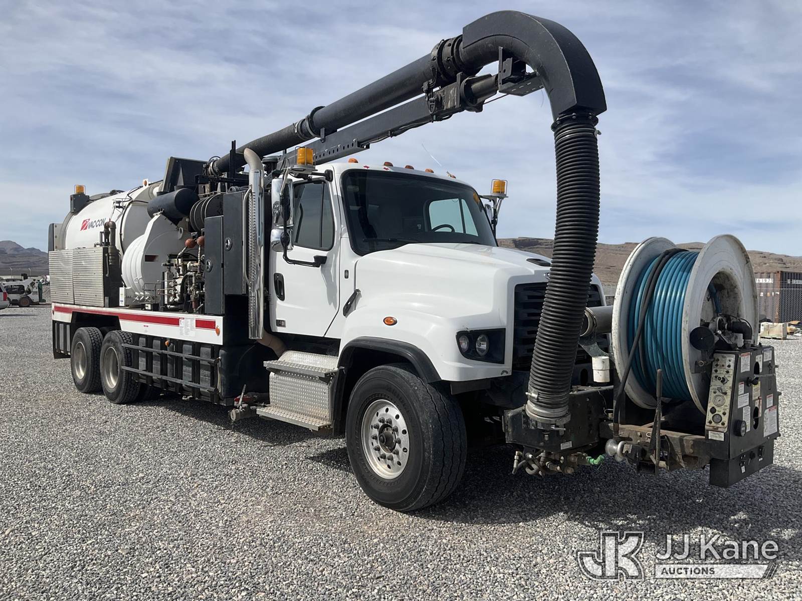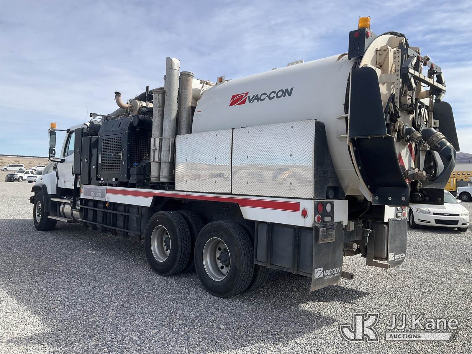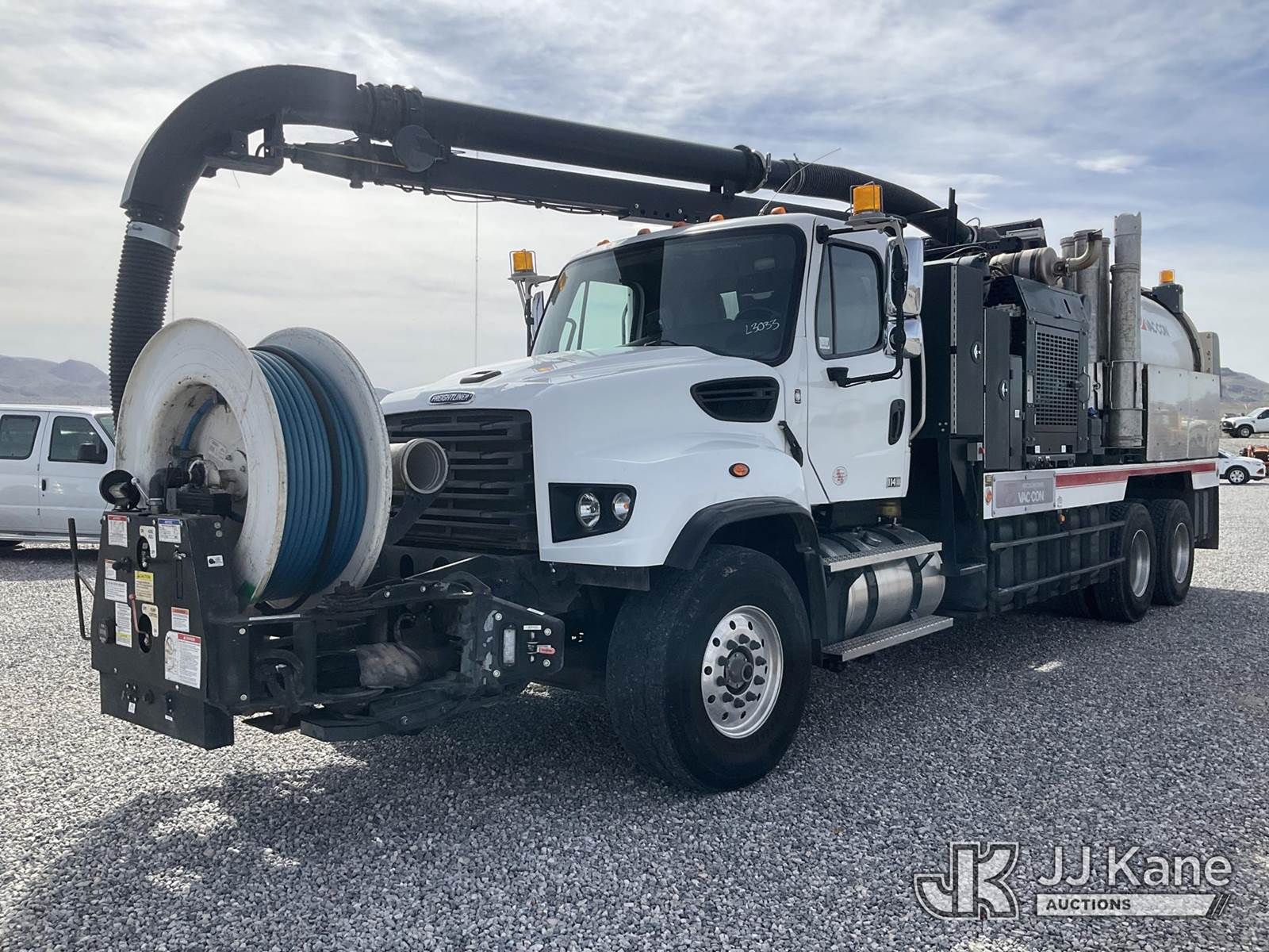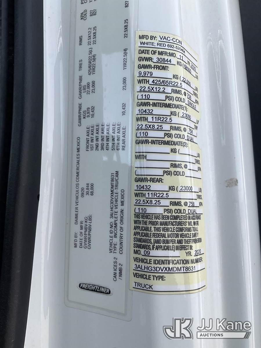 Vac Con V311LHAE, Vactor Unit s/n 01219014, John Deere diesel, mounted on 2021 Freightliner 114SD T/A Flatbed/Utility Truck, 12.8L L6 diesel, 6X4, Auto, A/C, (37,134 miles) (Runs & Moves & Operates) This is a Titled Item NOTE: This unit is being sold AS IS/WHERE IS via Timed Auction and is located in Las Vegas, NV. Inspection & preview days for this unit are the 2 business days prior to the first day of items closing for this auction, item is located at 14655 Grand Valley Pkwy Las Vegas, NV 89165 and hours of operations are 8a-4p. Titles executed exactly as bidder registered. Ensure your name and/or business name and address in JJ Kane and/or ProxiBid is correct before bidding. For pre-sale questions, please contact Office Staff @ (801) 519-0123 and provide sale date and lot number. Las Vegas Dealer License Number DLR000053086 / OHV000053094. (Buyer is responsible for removal. Assistance by consignor or JJ Kane Auctions is not assured.)
