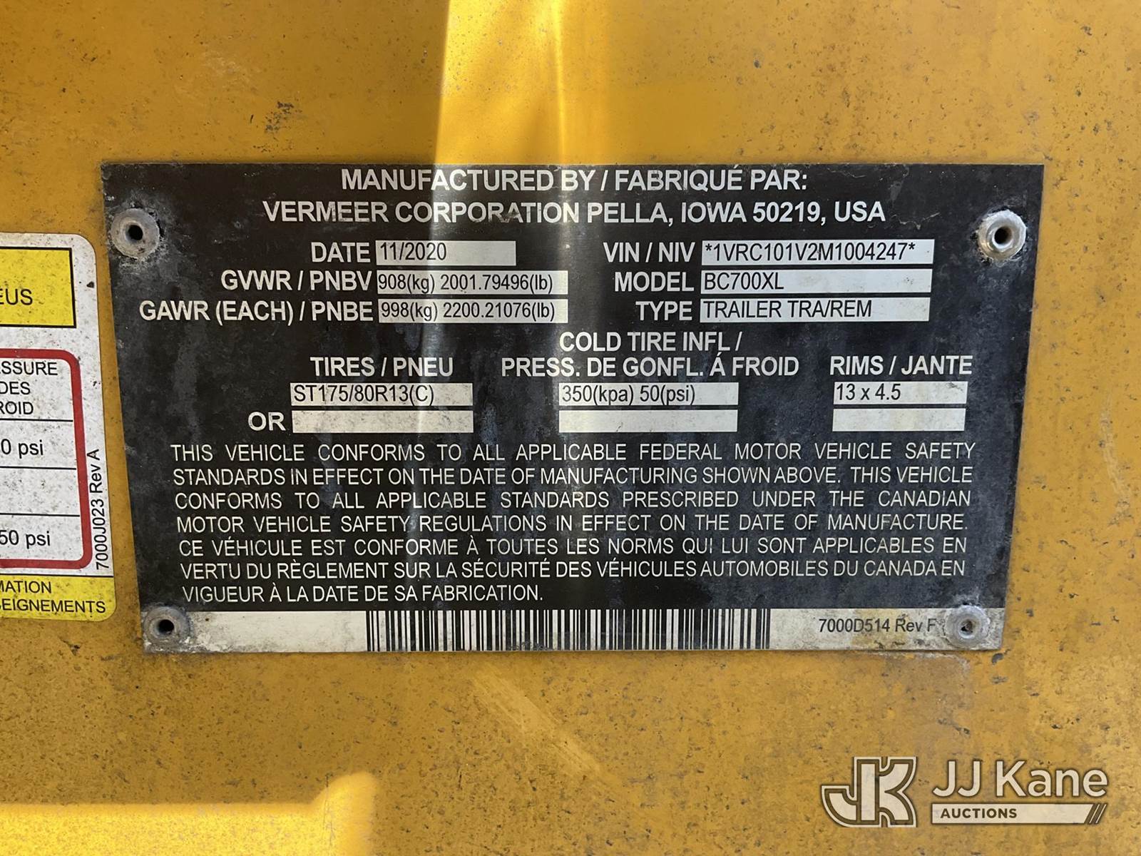 2021 Vermeer Corporation BC700XL Chipper, Kohler gas, (Not Running, Condition Unknown) (Reads 287 hours) This is a Titled Item NOTE: This unit is being sold AS IS/WHERE IS via Timed Auction and is located in South Beloit, IL. Inspection & preview days for this unit are the 2 business days prior to the first day of items closing for this auction, item is located at 14354 Dearborn Ave South Beloit, IL and hours of operations are 8a-4p. For pre-sale questions, please contact Derek Eklund at (608) 904-0618 or (derek.eklund@jjkane.com). (Buyer is responsible for removal. Assistance by consignor or JJ Kane Auctions is not assured.)