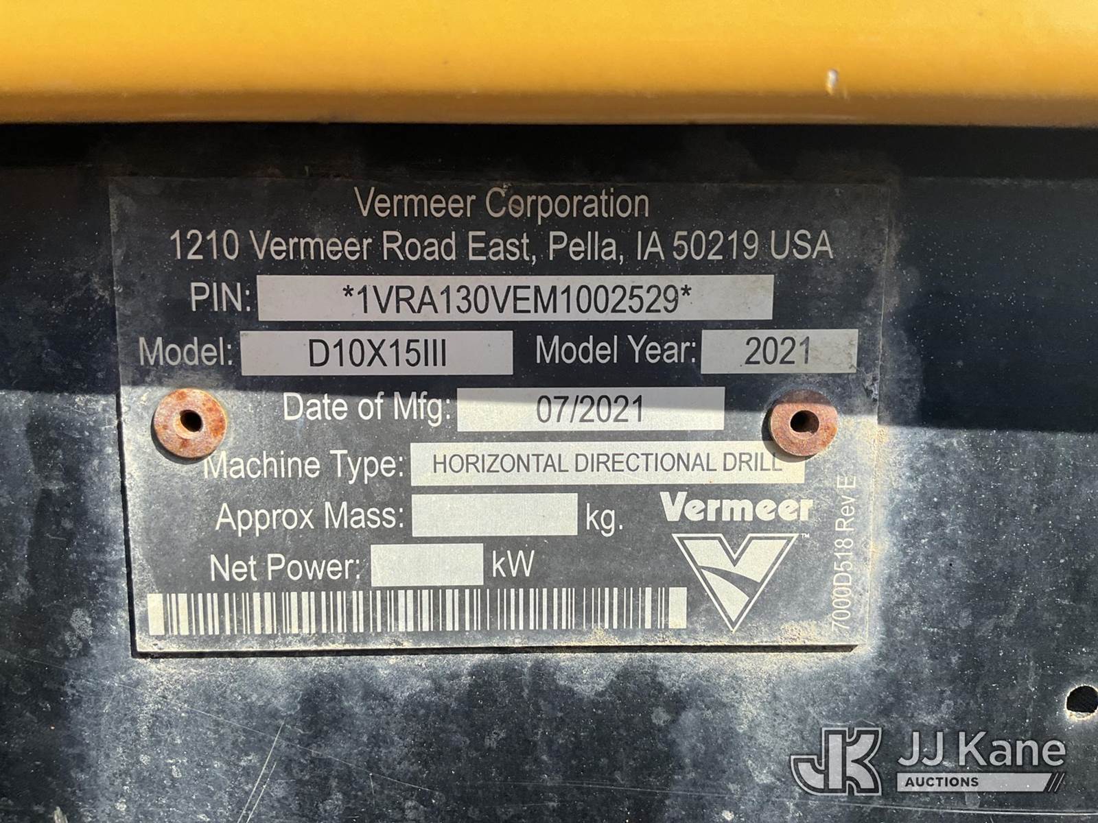 2021 Vermeer D10x15 Series III Directional Boring Machine, s/n 1VRA130VEM1002529, Deutz diesel, Hydrostatic, with rubber tracks, hyd hold downs, riding console, drill steel & 2021 B-B Tagalong Support Trailer 4L5SC2626MF054033 w/ mud mix system, Selling With Item 1587120.(Equipment and trailer price will be split out on invoice to reflect 80/20, equipment to trailer price ratio for tax purposes.) (Runs, Moves) (Reads 1,189 hours) NOTE: This unit is being sold AS IS/WHERE IS via Timed Auction and is located in South Beloit, IL. Inspection & preview days for this unit are the 2 business days prior to the first day of items closing for this auction, item is located at 14354 Dearborn Ave South Beloit, IL and hours of operations are 8a-4p. For pre-sale questions, please contact Derek Eklund at (608) 904-0618 or (derek.eklund@jjkane.com). (Buyer is responsible for removal. Assistance by consignor or JJ Kane Auctions is not assured.)