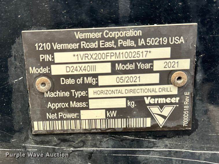2021 Vermeer DX24X40III directional boring unit