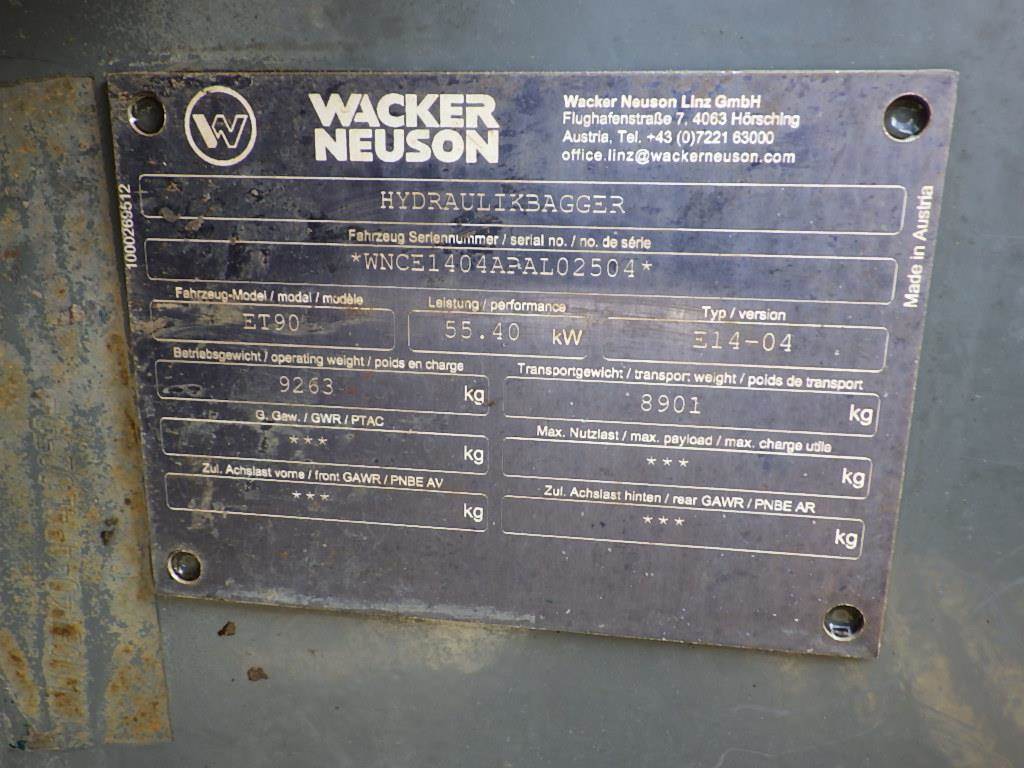 Description S/N: WNCE1404APAL02504 Deutz 2.9L Turbo Diesel, 2-Speed, EROPS, A/C, Heat, Swing Away Boom, Auxiliary Hydraulics, Hydraulic Quick Coupler, Hydraulic Thumb, 17" Bucket, 89" Backfill Blade, TBG Steel Tracks, Meter Reading: 1,853 Disclaimer: Hours and mileage are visually observed and not verified.