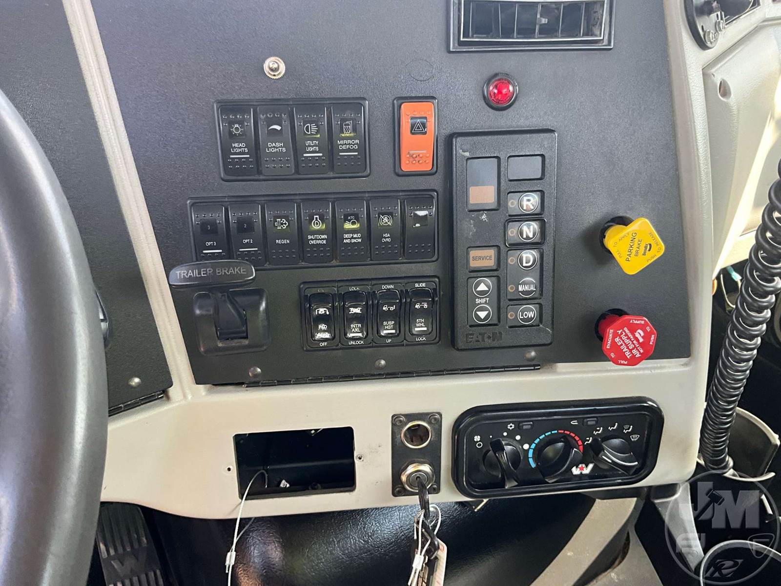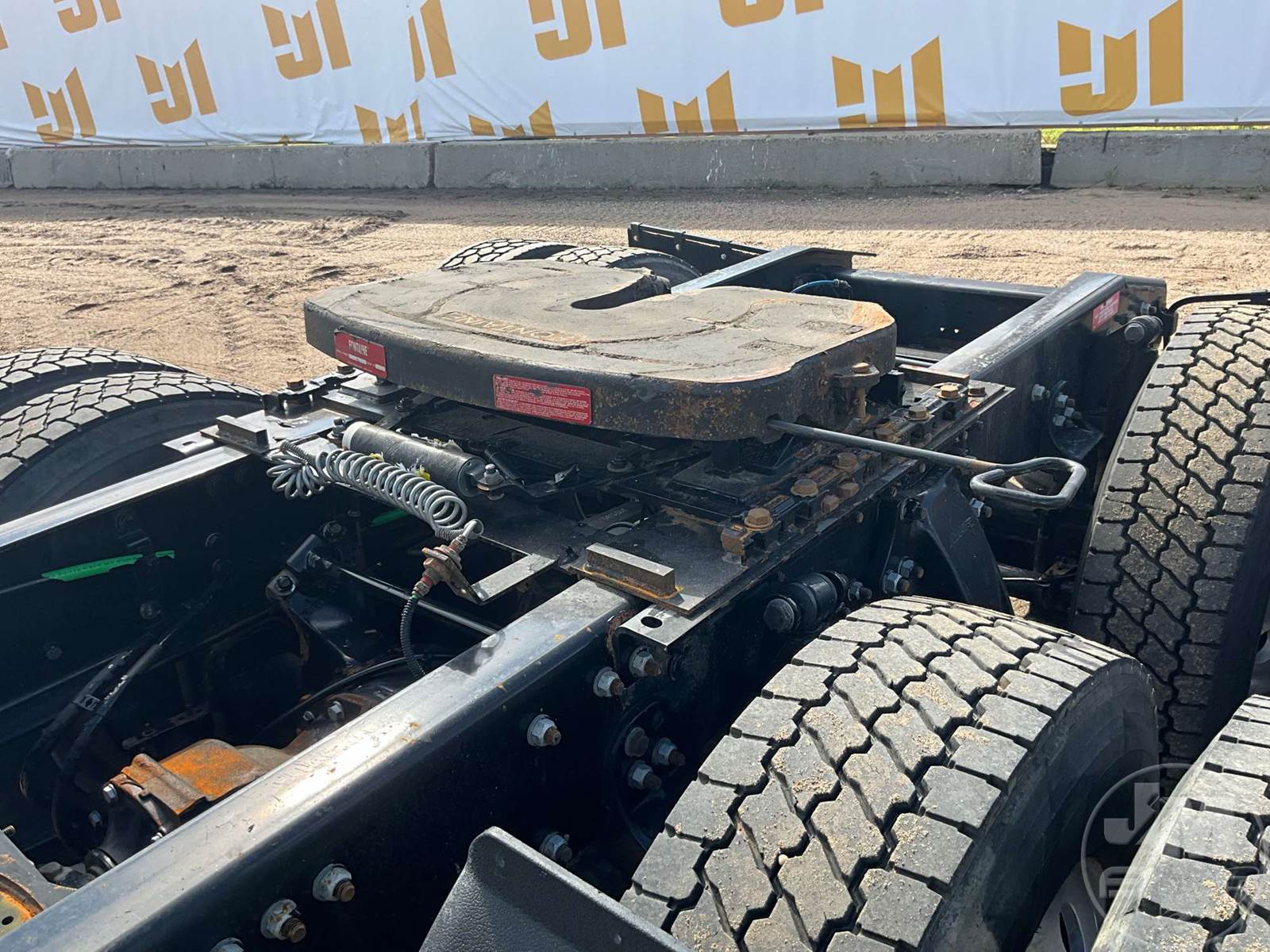 TANDEM AXLE DAY CAB TRUCK TRACTOR, DETROIT, DD13, 450 HP, EATON FULLER, AUTOMATIC, AIR RIDE SUSPENSION, DRUM, 196 " WB, C/A: 112, 12K FRONTS, 40K REARS, 52000 GVWR, AIR SLIDE FIFTH WHEEL, A/C, AIR DRIVERS SEAT, DUAL AIR SEATS, CRUISE CONTROL, POWER WINDOWS, ENGINE BRAKE, PTO, WET KIT, AIR RIDE CAB, ALUM DISC WHEELS, 295/75R22.5 TIRES, ODOMETER READS: 520730