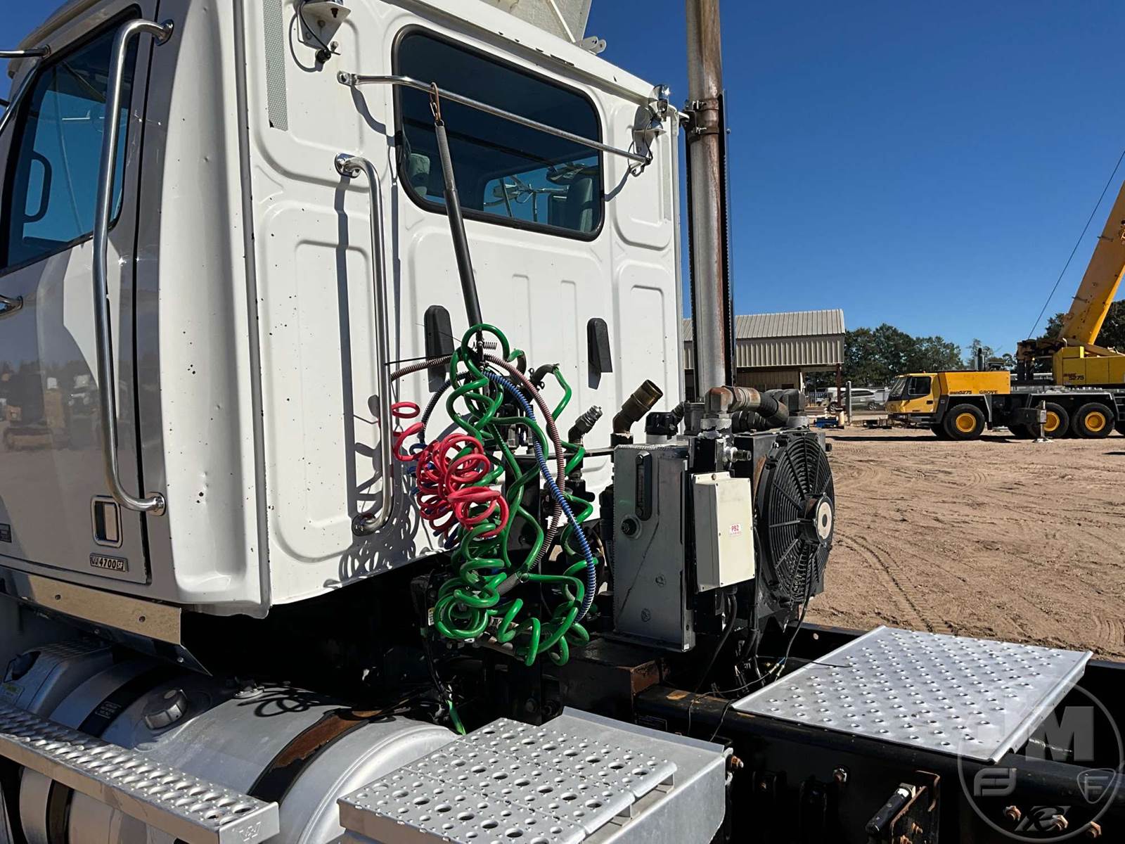 TANDEM AXLE DAY CAB TRUCK TRACTOR, DETROIT, 12.8L, 450 HP, EATON FULLER, AUTOMATIC, AIR RIDE SUSPENSION, 194 " WB, 12K FRONTS, 52000 GVWR, AIR SLIDE FIFTH WHEEL, A/C, DUAL AIR SEATS, CRUISE CONTROL, POWER WINDOWS, DIFF LOCK, PTO, AIR RIDE CAB, ALUM DISC WHEELS, 295/75R22.5 TIRES, ODOMETER READS: 415634