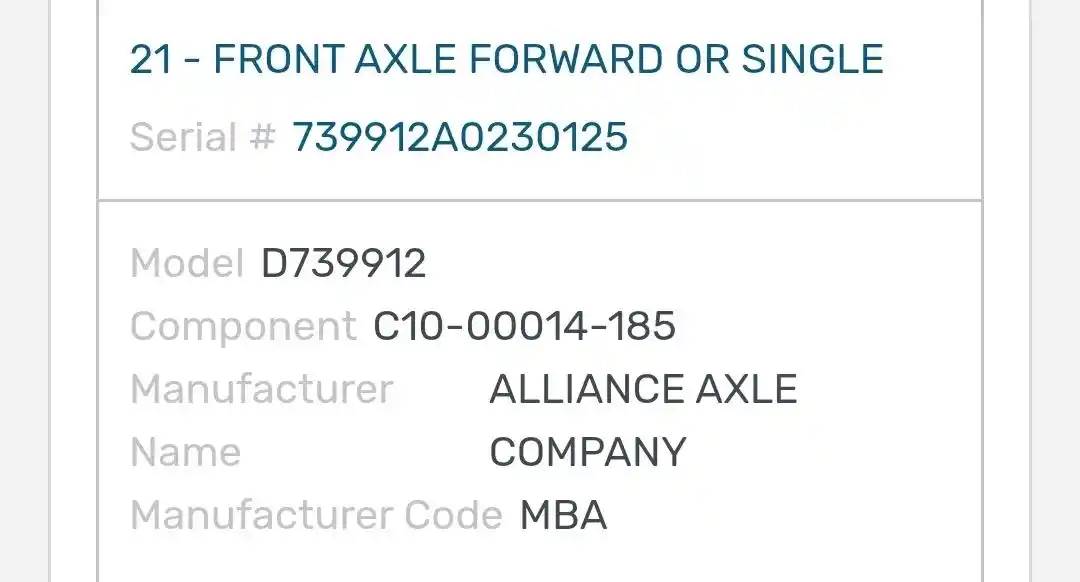 (Used) 2021 Western Star 49X, FRONT SPINDLE/KNUCKLE- Serial Number: 739912A0230125, Part Number: C10-00014-185, Side: Passenger Right Side, Make: Detroit, Model: D739912, Capacity: 14,320 Lbs, Hub Bolts: 10, Brake Type: Drum, Reference images for condition, For more information about this item, give us a call. We ship Worldwide! (CRG HEAVY TRUCK PARTS) 929 W PULASKI HWY, ELKTON, MD 21921, Capacity: 14,320 Lbs, Serial#: 739912A0230125, Hub Bolts: 10, Axle Make: Detroit