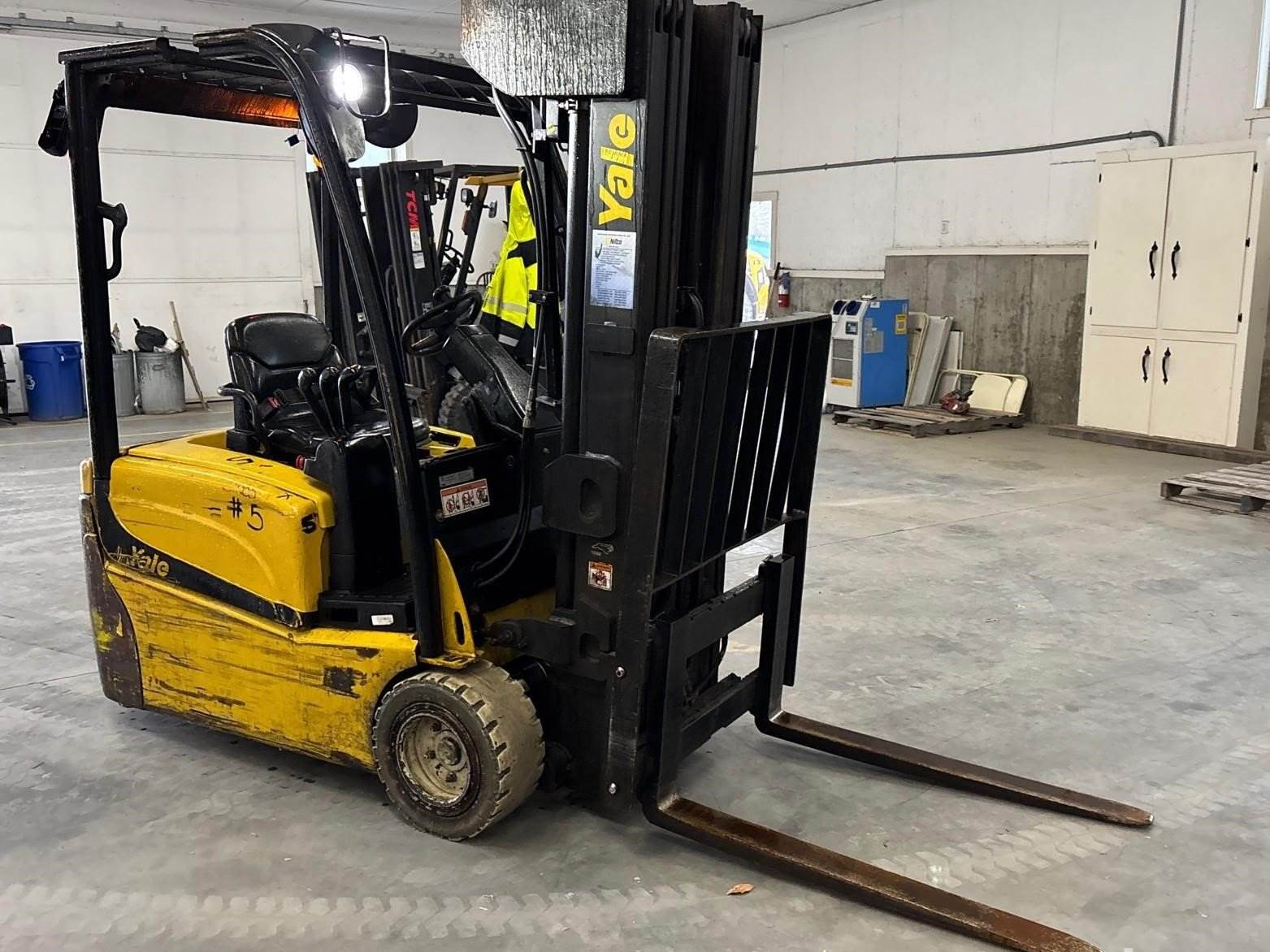 ELECTRIC FORKLIFT, YALE 4000 LB FORKLIFT, 36 VOLT CUSHION TIRE FORKLIFT, THREE WHEEL WAREHOUSE FORKLIFT, INDOOR MATERIAL HANDLING EQUIPMENT, USED ELECTRIC FORKLIFT FOR SALE, YALE ERP-VT SERIES, LOADING DOCK FORKLIFT, PALLET FORK TRUCK, DISTRIBUTION CENTER FORKLIFT, BATTERY POWERED FORKLIFT, WAREHOUSE LIFT TRUCK, COMMERCIAL ELECTRIC FORKLIFT, INDUSTRIAL FORKLIFT