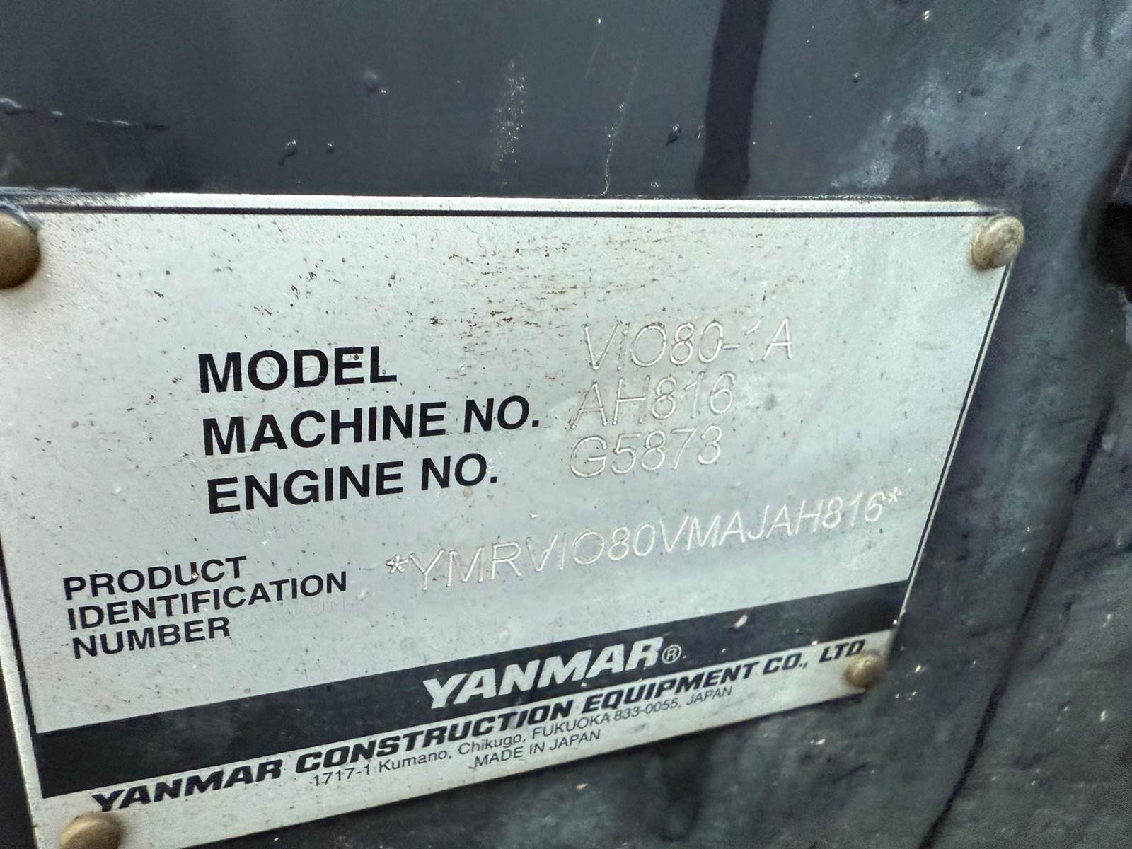 2018 Yanmar VIO80-1A Excavator