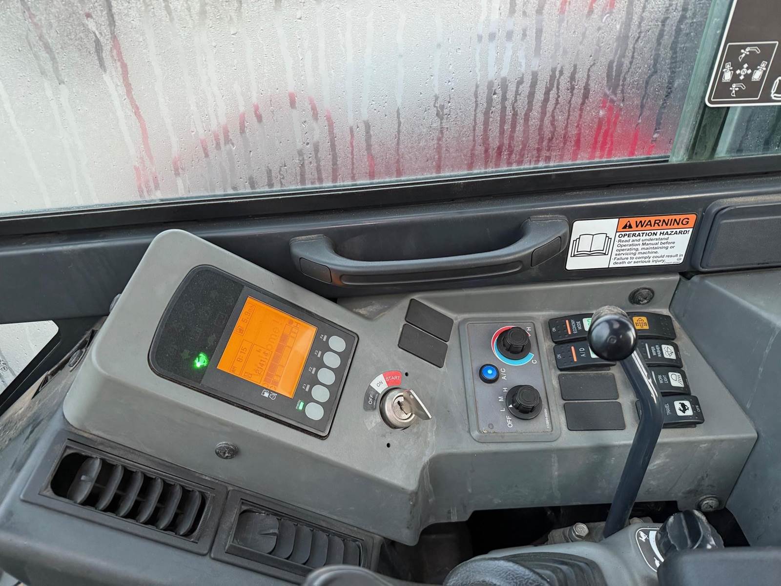 2,402 HRS. HYDRAULIC PIN GRABBER, ENCLOSED CAB, BLADE, RUBBER TRACKS, AUX HYDRAULICS, HYDRAULIC THUMB, 26" DIG BUCKET,