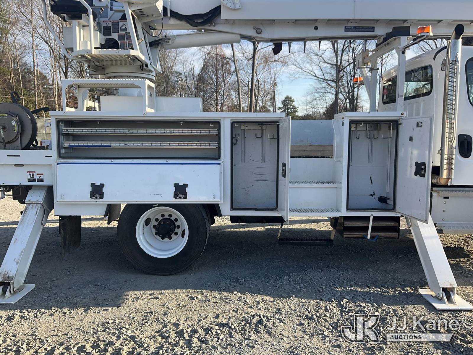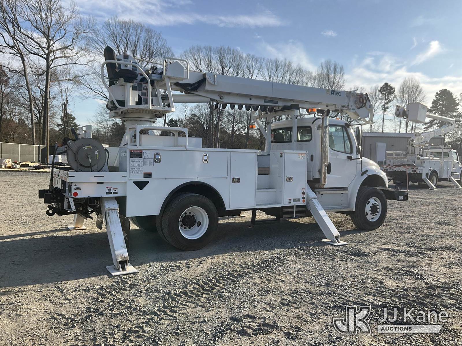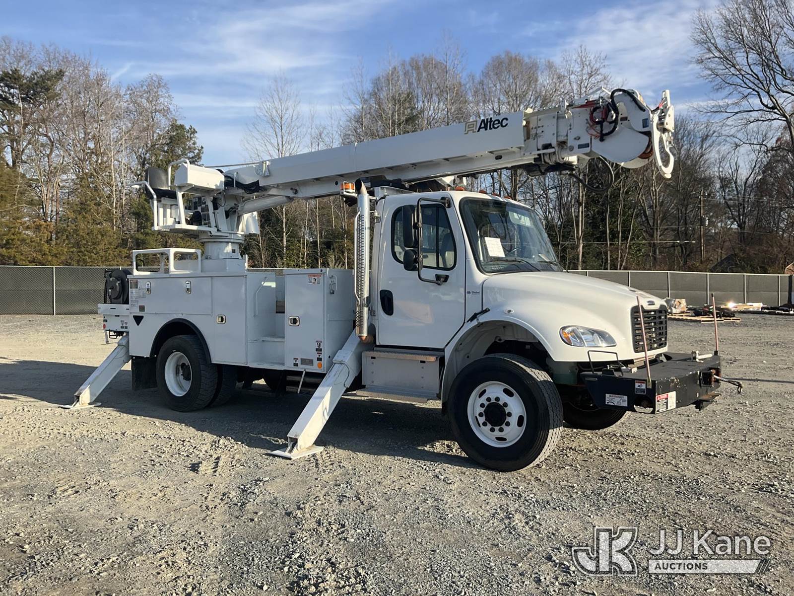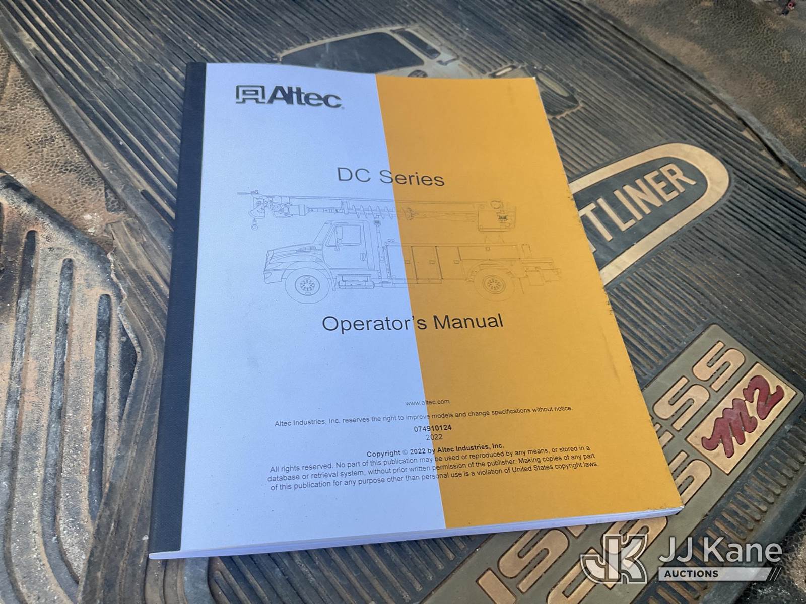 Altec DC47-TR, 23,790 Lb Digger Derrick s/n 0122EU5515, with 47 ft sheave height, 3 section hyd boom, 2 spd digger, heel winch, pole guides, riding console & 4 hyd outriggers, rear mounted on 2022 Freightliner M2 106 Utility Truck, Cummins 6.7L diesel, Auto, A/C, with front winch, (20,682 miles) (Runs & Moves) (Upper Condition Unknown, Hyd Leak) This is a Titled Item NOTE: This unit is being sold AS IS/WHERE IS via Timed Auction and is located in China Grove, NC. (Manuals provided in cab) (Buyer is responsible for removal. Assistance by consignor or JJ Kane Auctions is not assured.)