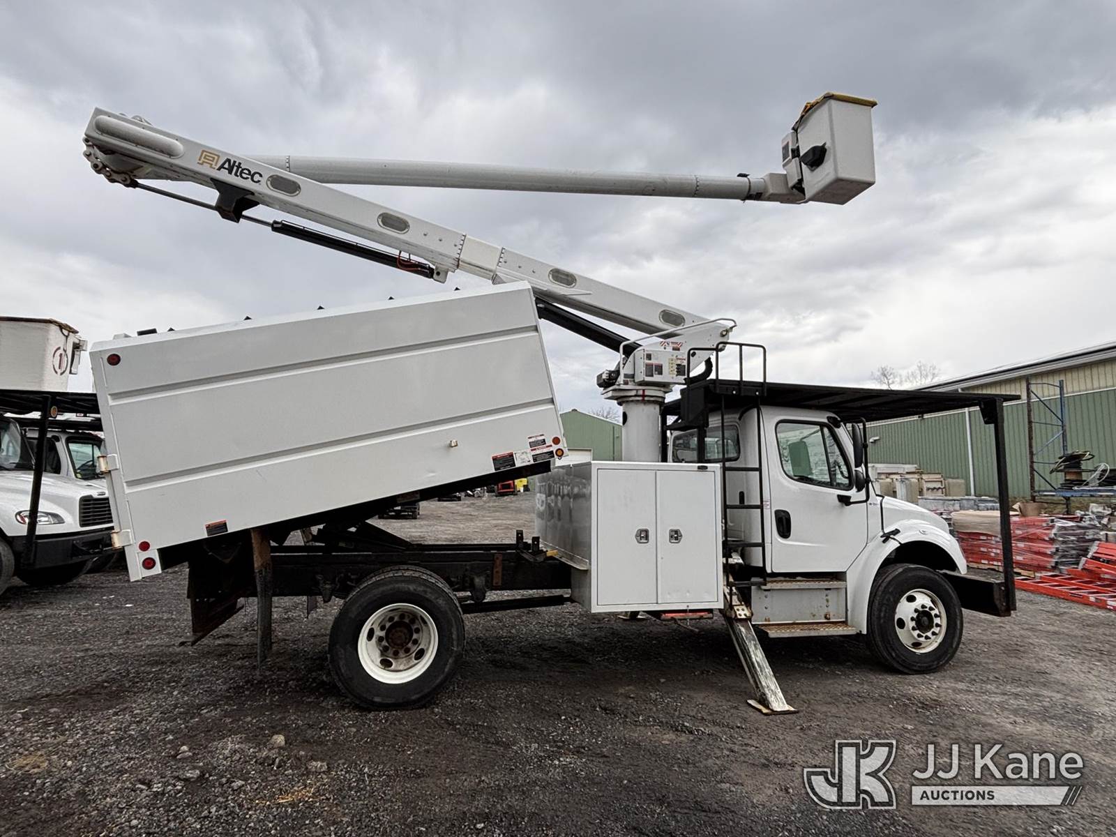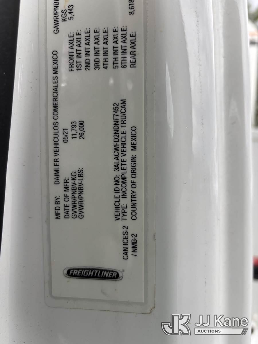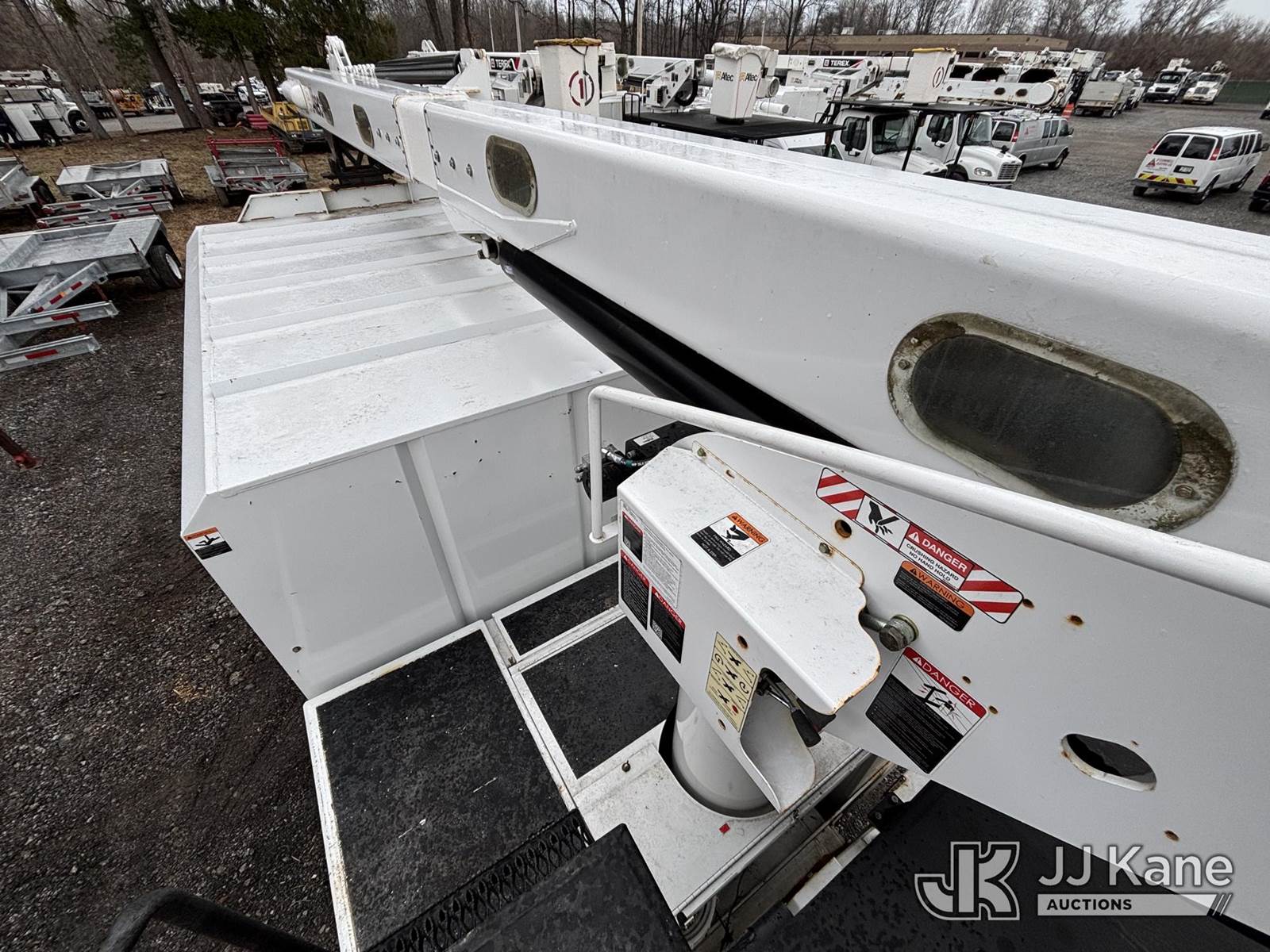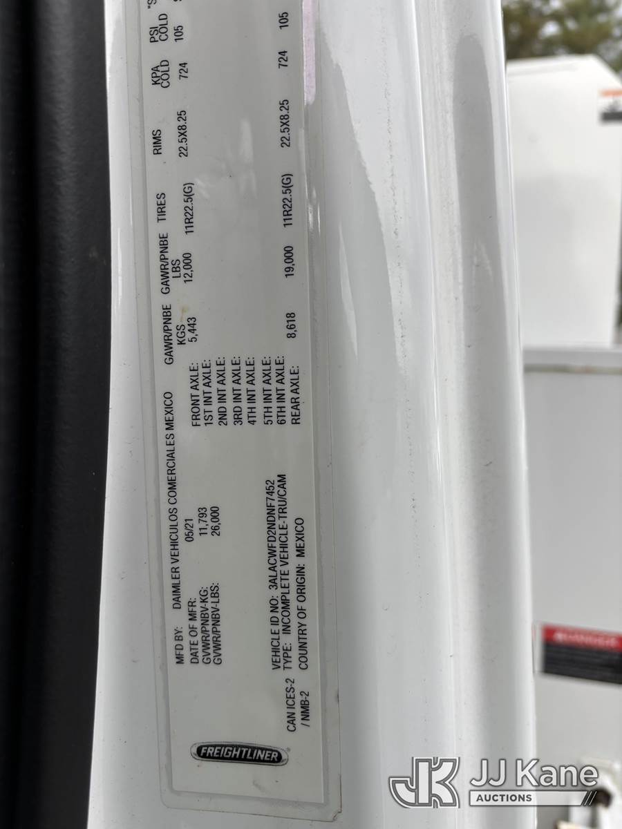 Altec LR8-56, 61 ft, Over-Center Bucket Truck s/n 0621JF0704, with single-man bucket & 2 hyd outriggers, mounted behind cab on 2022 Freightliner M2 106 Chipper Dump Truck, 6.7L diesel, Auto, A/C, (35,286 miles) (Runs, Moves & Operates) (Body, Rust & Paint Damage) (Reads 805 hours) This is a Titled Item NOTE: This unit is being sold AS IS/WHERE IS via Timed Auction and is located in Victor, NY. For pre-sale questions, please contact Adel Cekic at adel.cekic@jjkane.com. Inspection by appointment only. Removal of items will begin the day following the sale and continue Monday through Friday, 8:00 am to 4:00 pm. Purchaser acknowledges ALL lots must be removed within (10) business days or a storage fee may be incurred. There will be no payments accepted onsite. Buyer/Hauler must present a copy of the (Paid in Full) Invoice or Release Form upon arrival. Please refer to the Pick Up Terms listed on the Release Form sent out after purchase. (Missing manuals, See Auction Company for Manufacturers Information to obtain manuals) (Buyer is responsible for removal. Assistance by consignor or JJ Kane Auctions is not assured.)