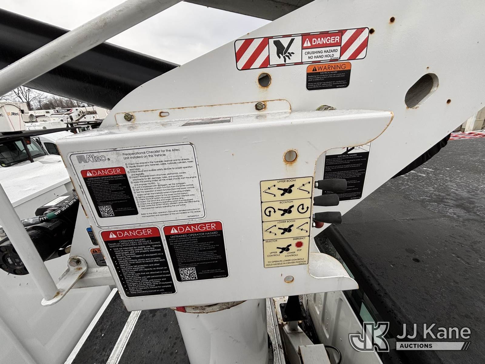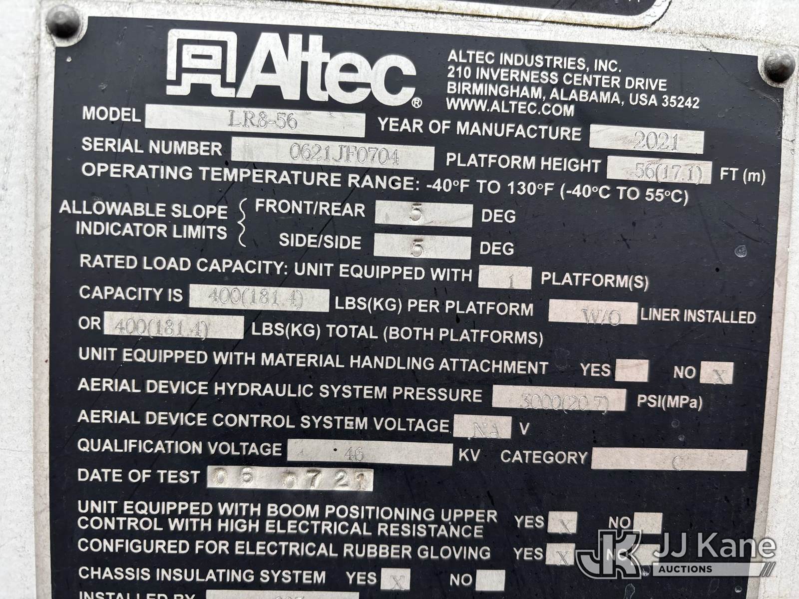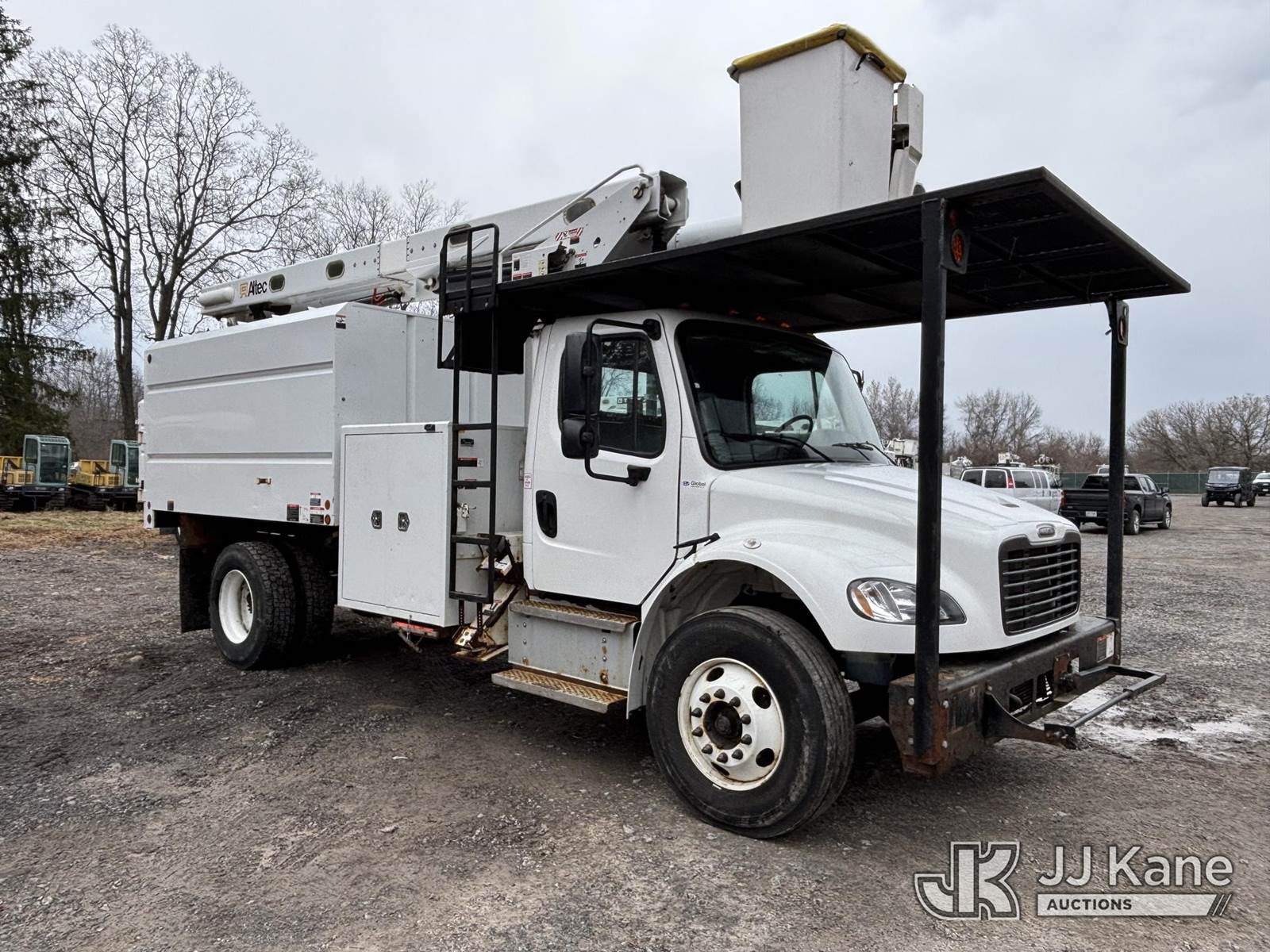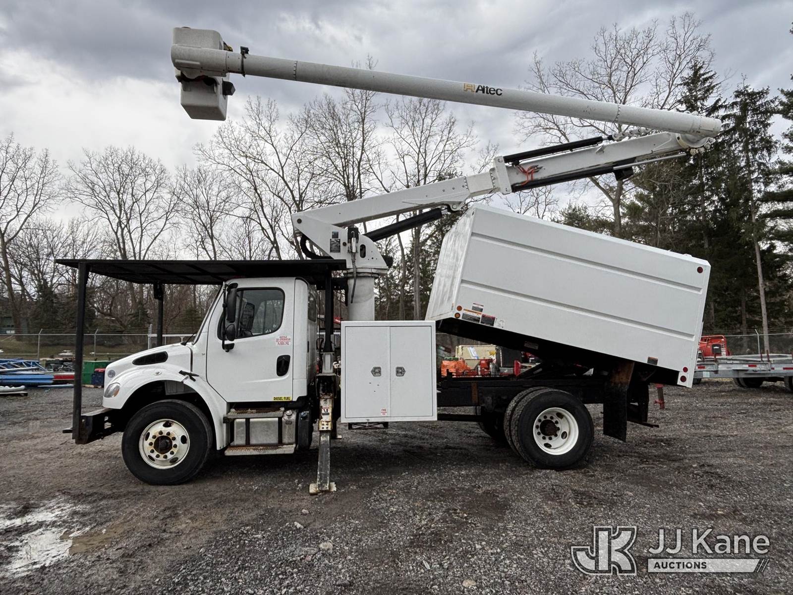 Altec LR8-56, 61 ft, Over-Center Bucket Truck s/n 0621JF0704, with single-man bucket & 2 hyd outriggers, mounted behind cab on 2022 Freightliner M2 106 Chipper Dump Truck, 6.7L diesel, Auto, A/C, (35,286 miles) (Runs, Moves & Operates) (Body, Rust & Paint Damage) (Reads 805 hours) This is a Titled Item NOTE: This unit is being sold AS IS/WHERE IS via Timed Auction and is located in Victor, NY. For pre-sale questions, please contact Adel Cekic at adel.cekic@jjkane.com. Inspection by appointment only. Removal of items will begin the day following the sale and continue Monday through Friday, 8:00 am to 4:00 pm. Purchaser acknowledges ALL lots must be removed within (10) business days or a storage fee may be incurred. There will be no payments accepted onsite. Buyer/Hauler must present a copy of the (Paid in Full) Invoice or Release Form upon arrival. Please refer to the Pick Up Terms listed on the Release Form sent out after purchase. (Missing manuals, See Auction Company for Manufacturers Information to obtain manuals) (Buyer is responsible for removal. Assistance by consignor or JJ Kane Auctions is not assured.)