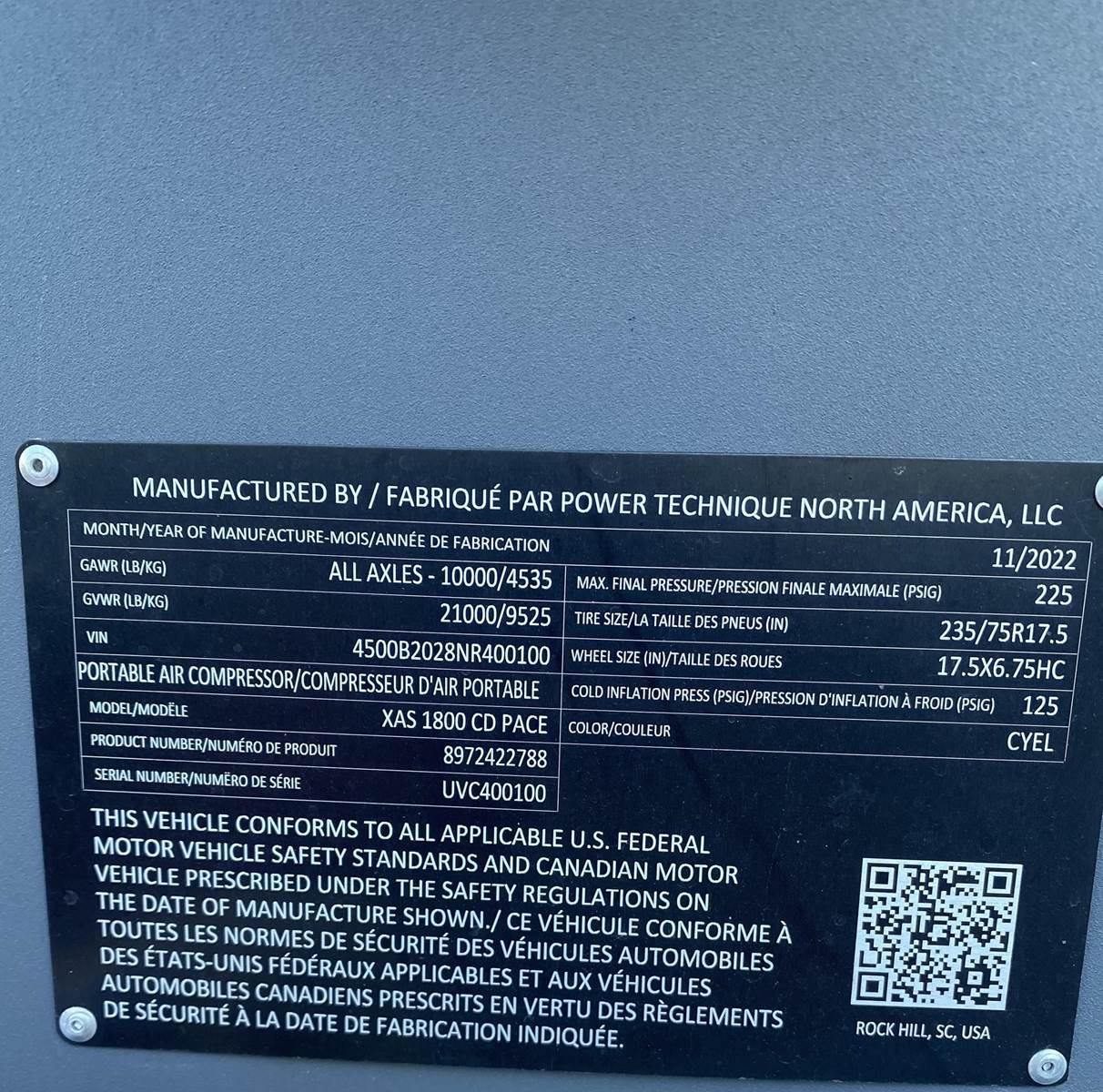 2022 Atlas Copco XAS1800CD Air Compressor