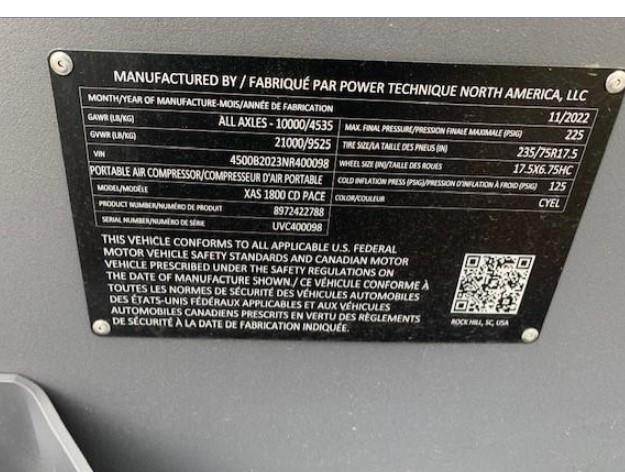2022 Atlas Copco XAS1800CD Air Compressor