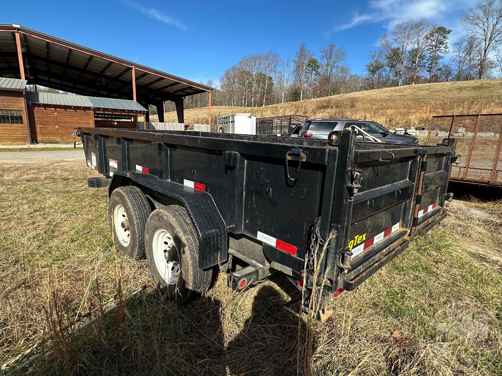 DUMP TRAILER, 2 AXLE, SWING DOOR, TOOL BOX, COVERED WHEELS, 2-5/16" BALL, ELECTRIC BRAKES, 235/80R16 TIRES, 14000 GVWR, 7'X15'