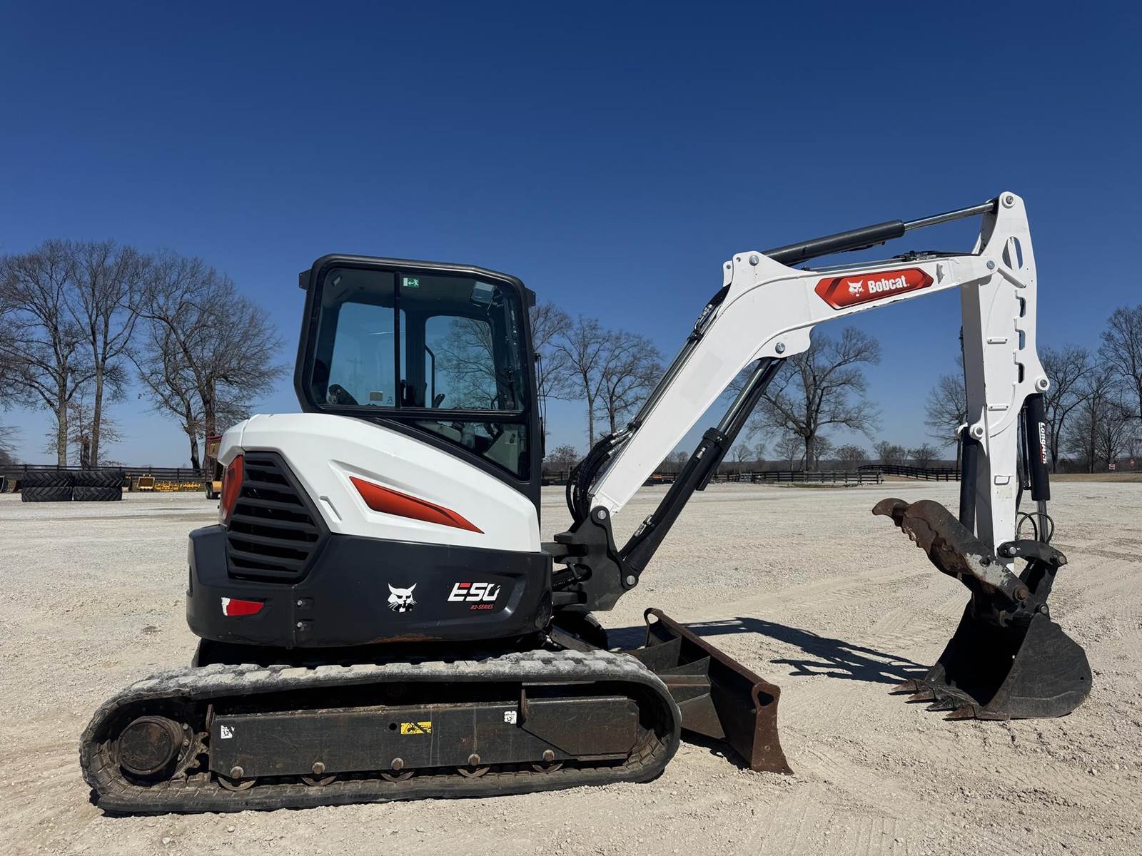 2022 BOBCAT E50 R2 SERIES, 1708 HOURS, 12,000 LBS, 50 HP, HYDRAULIC THUMB, NEW THEETH, COUPLER, PUSH BLADE, RUBBER TRACK, ENCLOSED CAB, A/C , HEAT, RADIO