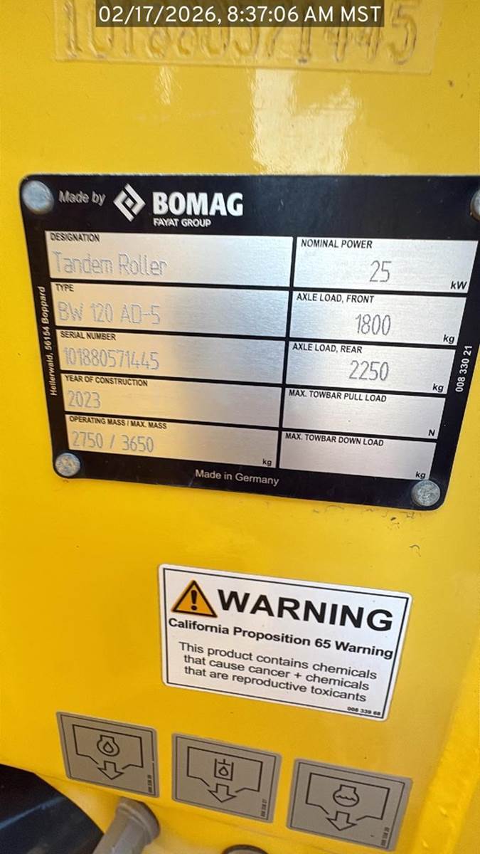 2022 BOMAG BW120AD-5 Smooth Drum Roller Compactor