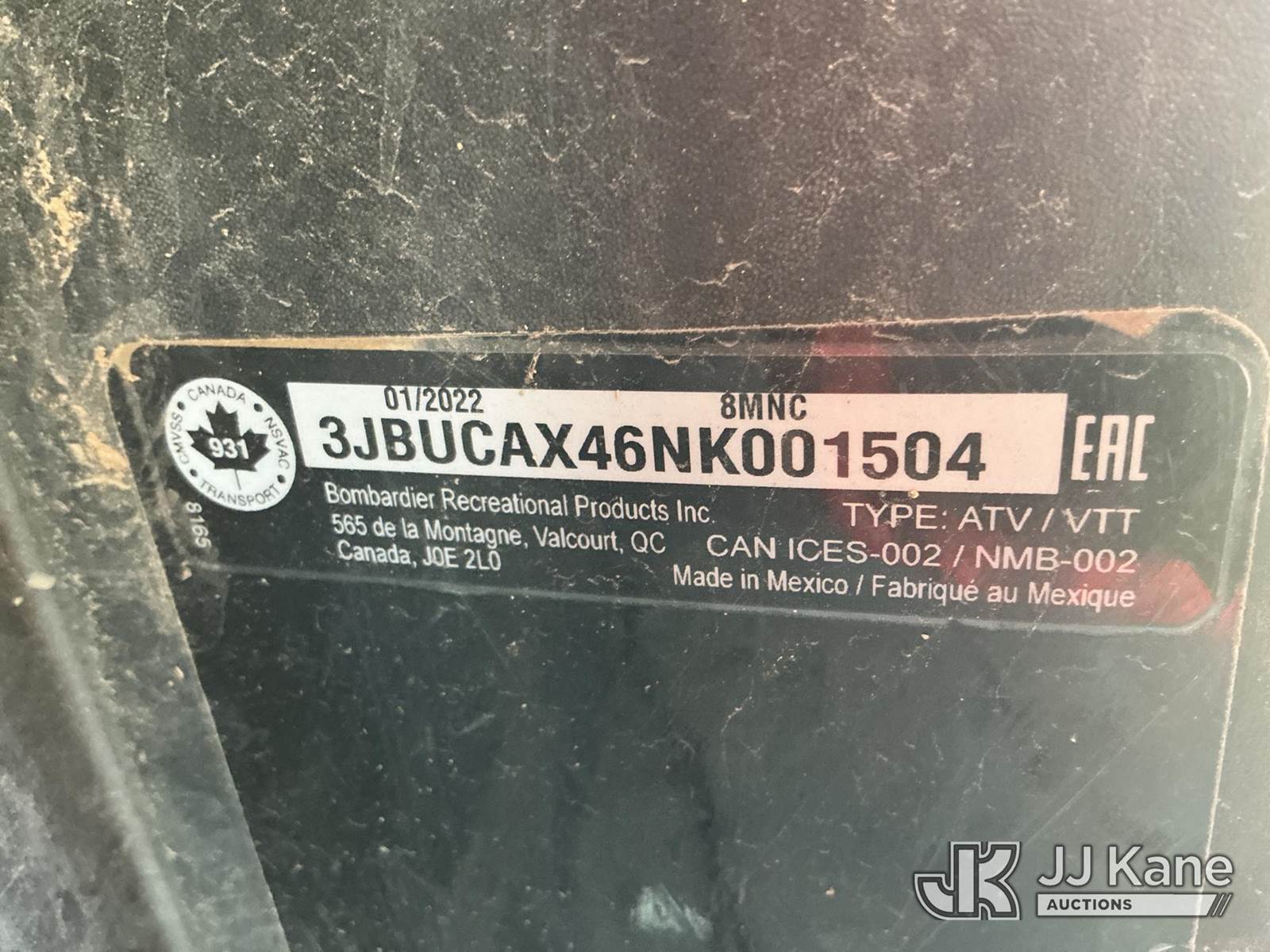 2022 Can-Am Defender XT HD10 Yard Cart, s/n 3JBUCAX46NK001504, gas Auto, with front winch , (Runs) (Jump To Start, Not Moving, Condition Unknown, Body Damage) (Seller States: Needs $7,000 Worth Of Repairs) (Reads 753 hours) NOTE: This unit is being sold AS IS/WHERE IS via Timed Auction and is located in China Grove, NC. Inspection & preview days for this unit are the 2 business days prior to the first day of items closing for this auction, item is located at 820 E NC Hwy 152 China Grove, NC 28023 and hours of operations are 8a-4p. For pre-sale questions, please contact Office Staff @ (704) 674-1113. (Buyer is responsible for removal. Assistance by consignor or JJ Kane Auctioneers is not assured.)