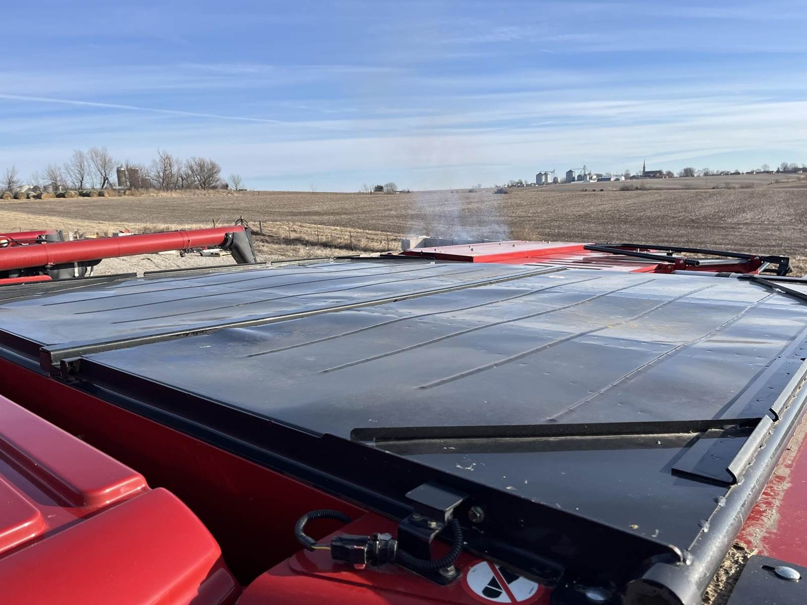 The luxury cab features a leather seat and full LED lighting package with distance lights for maximum visibility during long harvest windows. Hydraulic folding grain tank and cover streamline operation, while the 40-ft unloading auger extension provides added reach for grain handling efficiency.