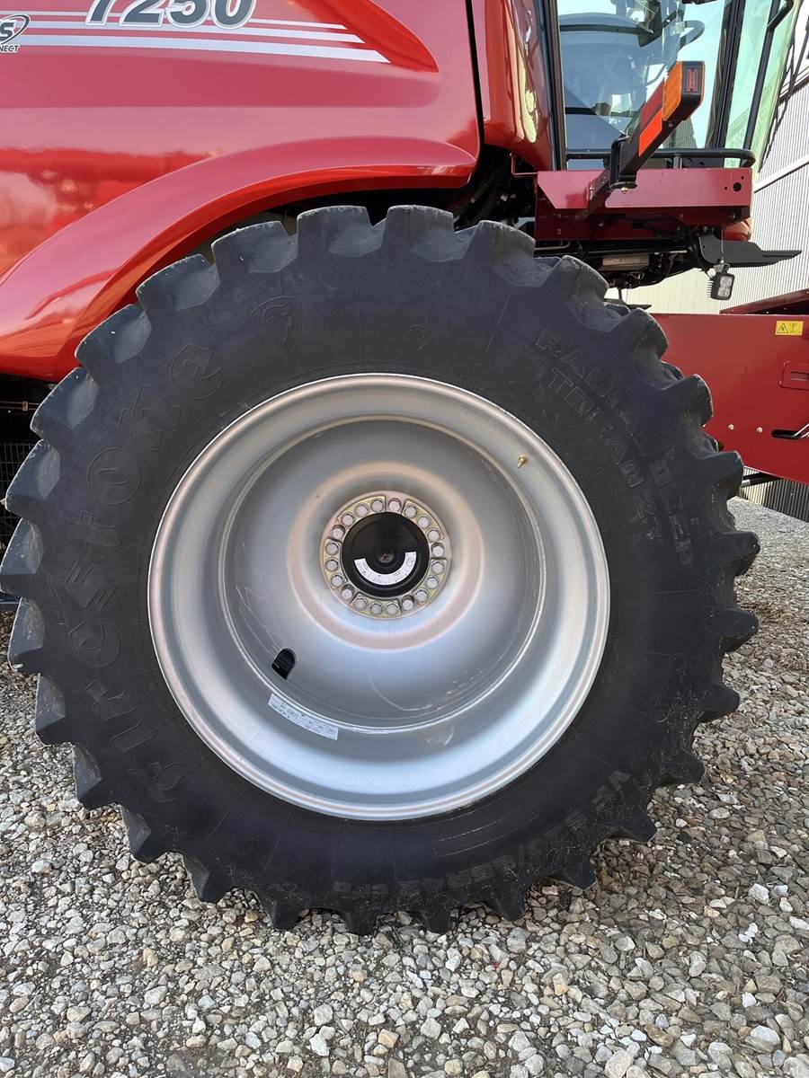 Step into high-capacity harvesting with this 2022 Case IH 7250—built for power, precision, and operator comfort. Equipped with VF520/85R42 front duals and VF600/70R28 rear tires, it delivers exceptional flotation and stability in varying field conditions. The PRWD system adds traction support when the terrain demands more.