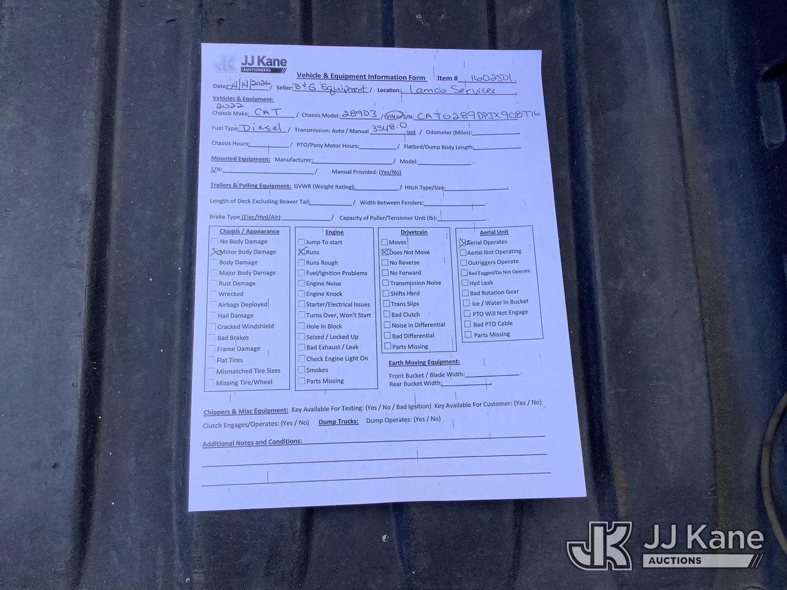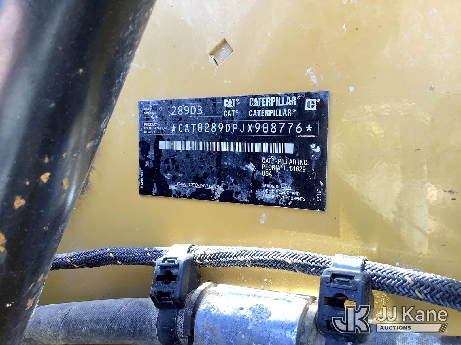 2022 CAT 289D3 Skid Steer Loader, s/n CAT0289DPJX908776, diesel, Hydrostatic, with GP loader bucket, aux hydraulics, rubber tracks, ROPS, (Runs, Moves & Operates) (Reads 3,548 hours) NOTE: This unit is being sold AS IS/WHERE IS via Timed Auction and is located in Graysville, AL. Inspection & preview days for this unit are by appointment only; please contact us at contact@jjkane.com or 84-Go-JJKane for more details. Alabama Auctioneer Michael Whitebread - License # 5592 (Buyer is responsible for removal. Assistance by consignor or JJ Kane Auctions is not assured.)