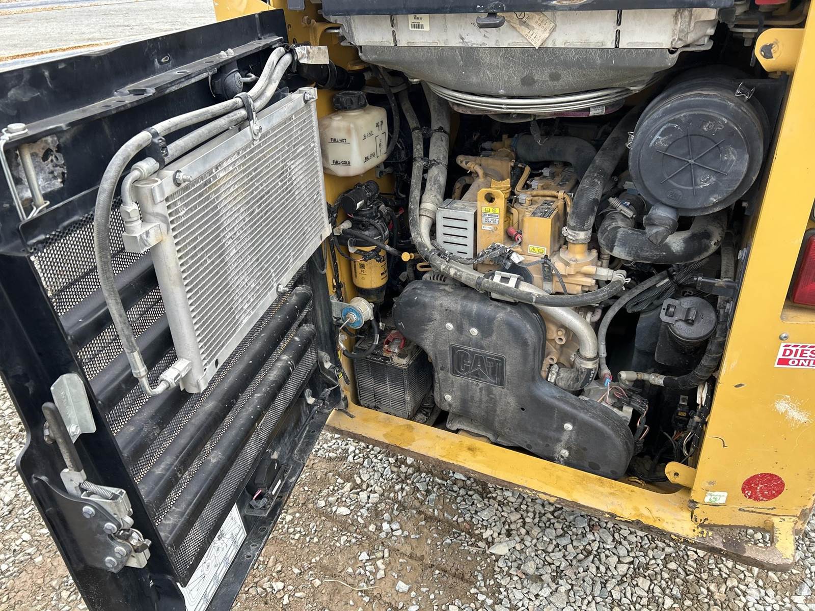 Caterpillar C3.3B Turbo Diesel Engine, Two Speed Transmission, Approx. 72" Bucket Width, Hydraulic Quick Attach, Auxillary Hydraulics, EROPS, Heat, AC, Suspension Heated Seat, Joystick Controls, Backup Camera, Radio, Work Lights, 12-16.5 Tires