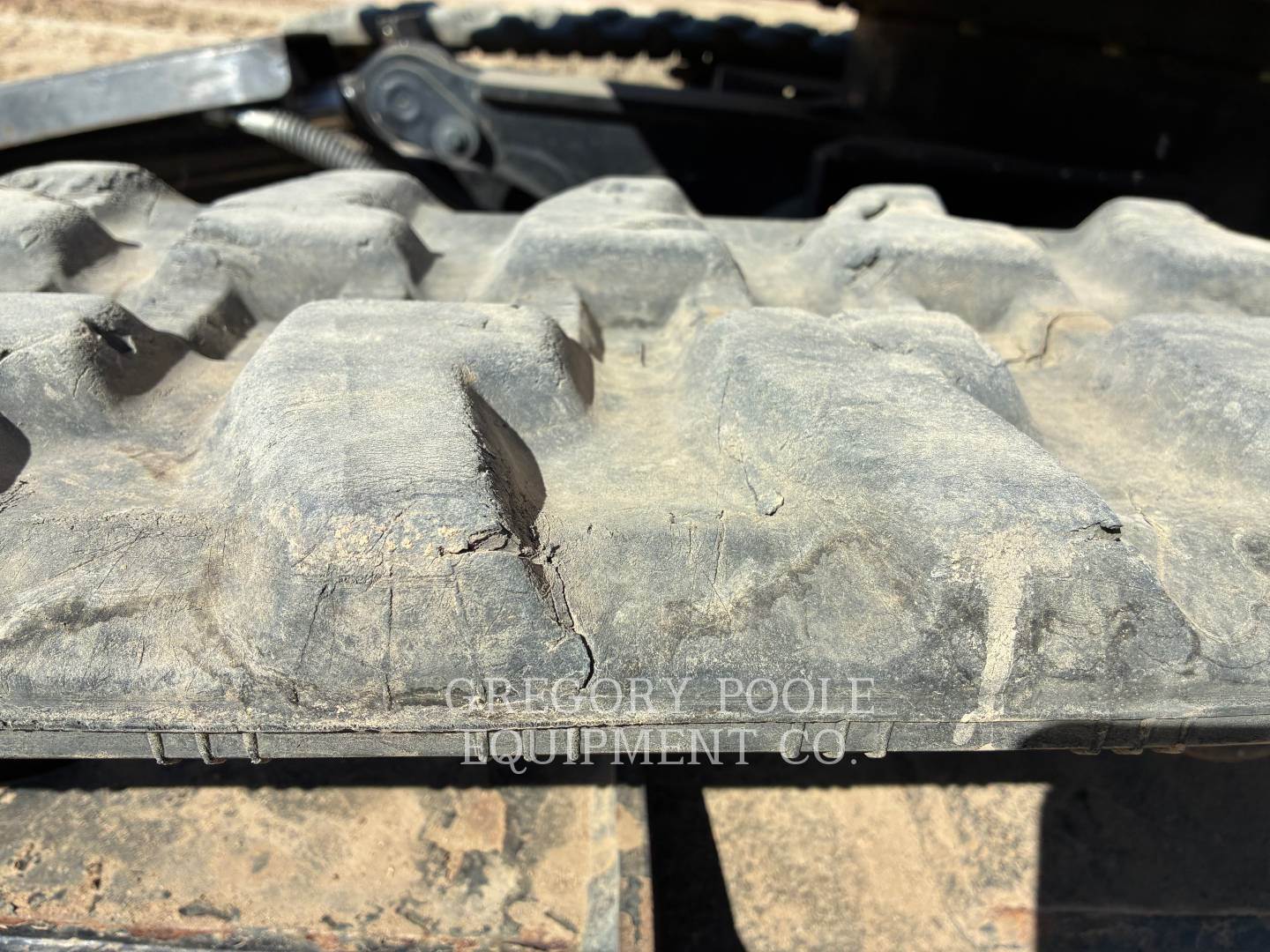 16 in. rubber tracks with small nicks and cuts, tread depth is 20mm, 30% worn