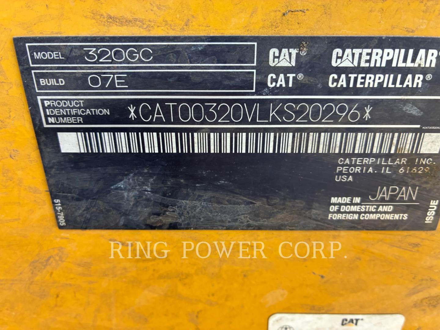 320 07GC EXCAVATOR ARRANGEMENT