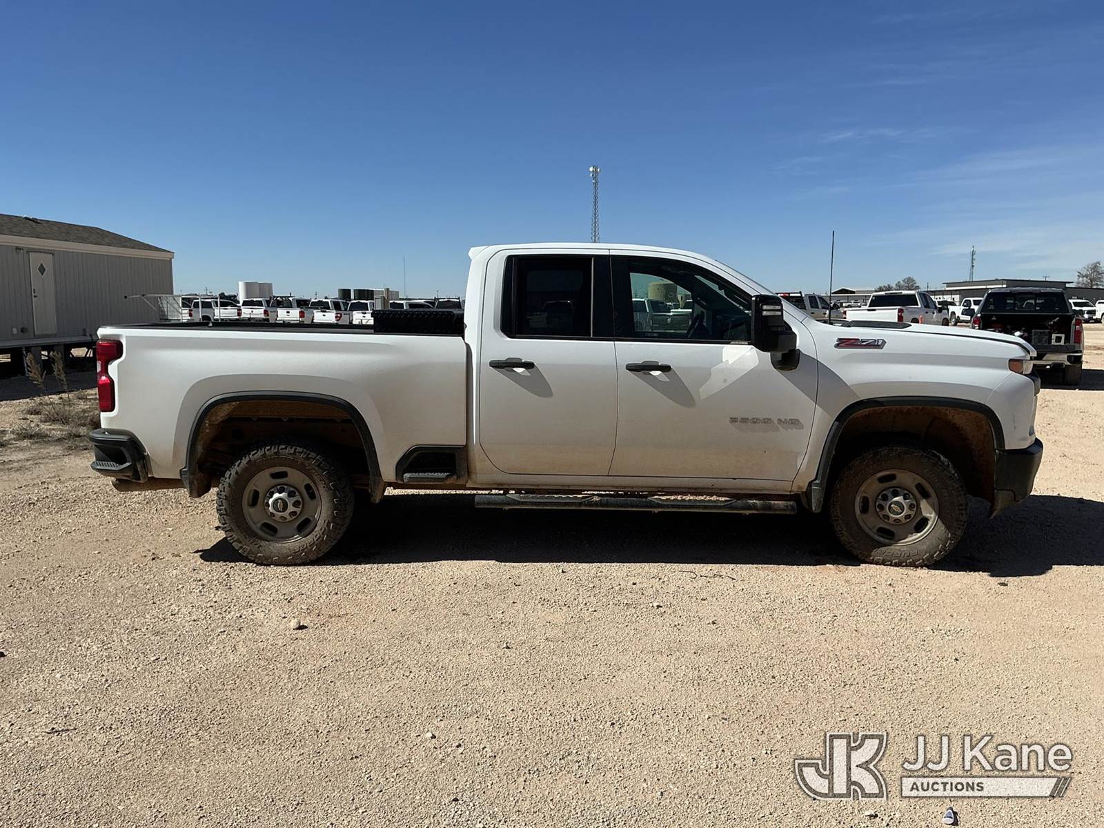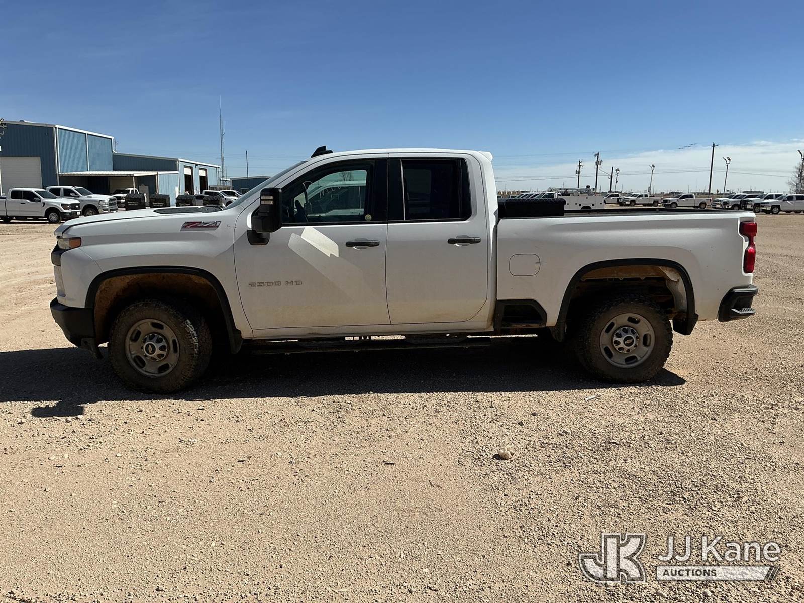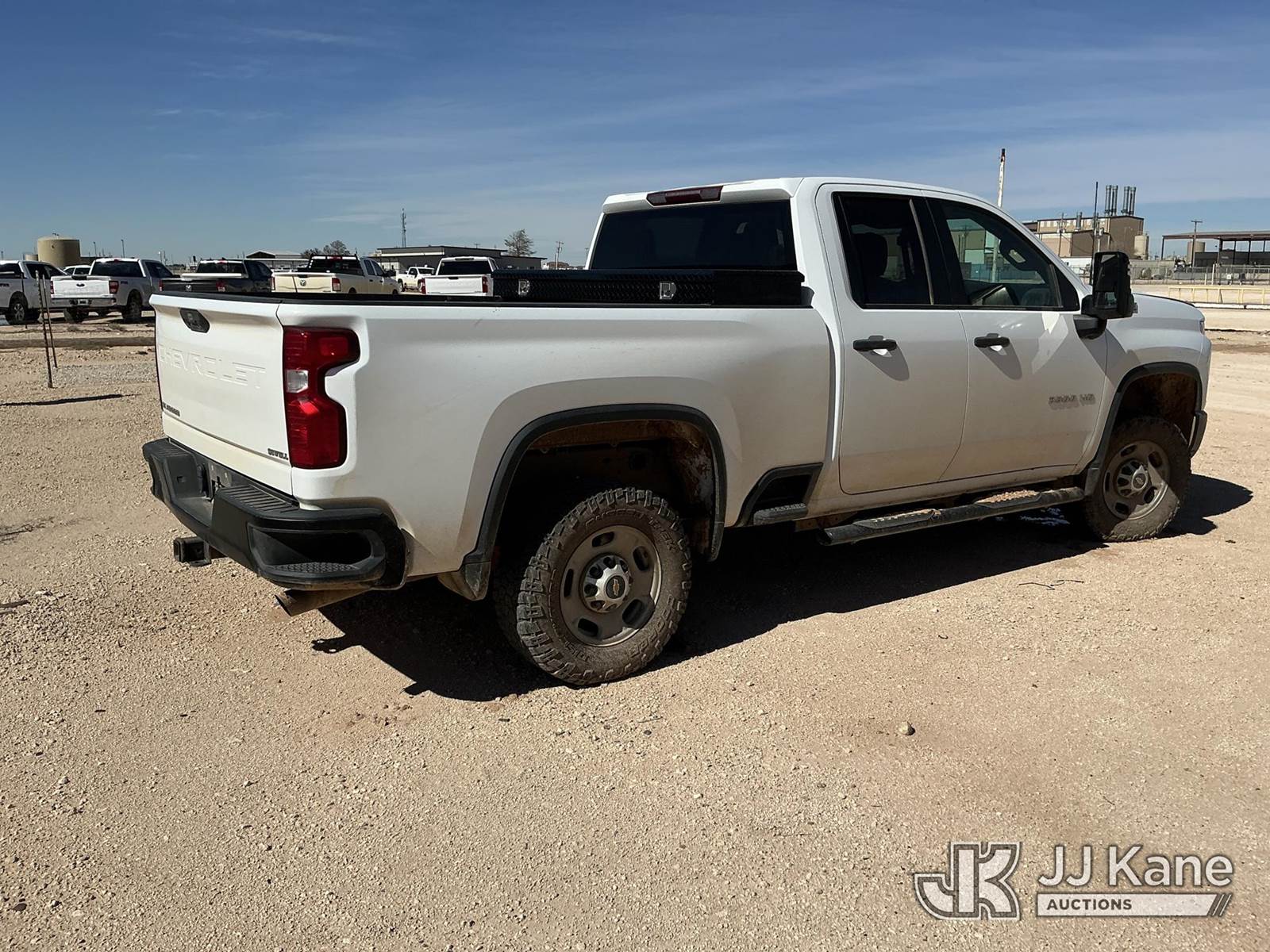 2022 Chevrolet Silverado 2500HD Extended-Cab Pickup Truck, 8-cyl gas, 4WD, 6-Speed Automatic, A/C, with Cab Mounted Computer Stand, Auxiliary Fuel Tank, Bed Mounted Toolbox , (113,160 miles) (Runs, But Does Not Move) (Jump To Start, Major Oil Leak Underneath Engine, Body Damage Hood Has Dents, Both Mirror Assemblies Are Damaged, Body Has Scratches, Right Side Of Rear Bumper Is Damaged) This is a Titled Item NOTE: This unit is being sold AS IS/WHERE IS via Timed Auction and is located in Midland, TX. For pre-sale questions please call EJ Brown at (915) 341-2565. (Buyer is responsible for removal. Assistance by consignor or JJ Kane Auctions is not assured.)