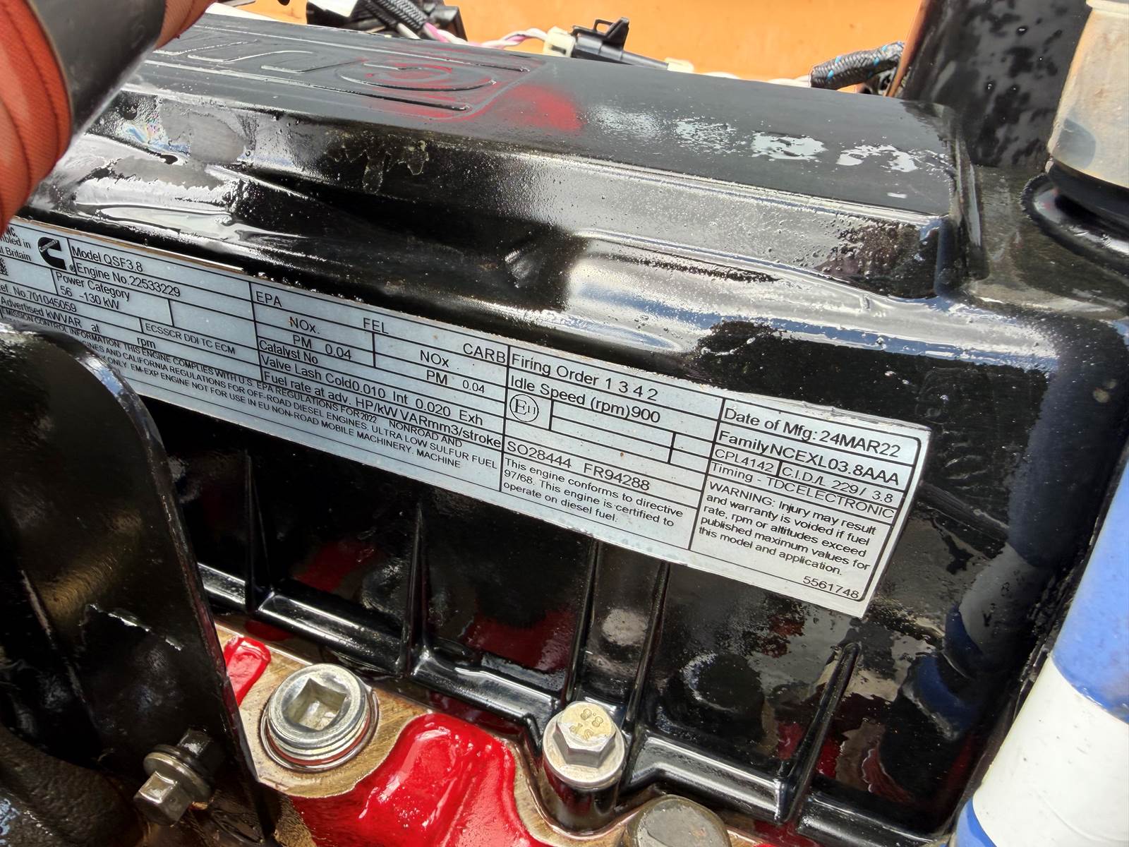 (NEW) 2022 Cummins QSF3.8 Industrial Diesel Engine Power Unit (Tier 4 Final), CPL 4142, 130HP @ 2500RPM, Engine Family #: NCEXL03.8AAA, Service Model Name: QSF3.8 CM2350 F107. Engine Serial # 22533229, E.C.S: SCR, DDI, TC, ECM. Market Name: QSF3.8, Engine Configuration D0F3006CX03! visit JJREBUILDERS for more information on this motor or any other diesel engine. Call 786-377-5210 for more information. REF INV # 006828