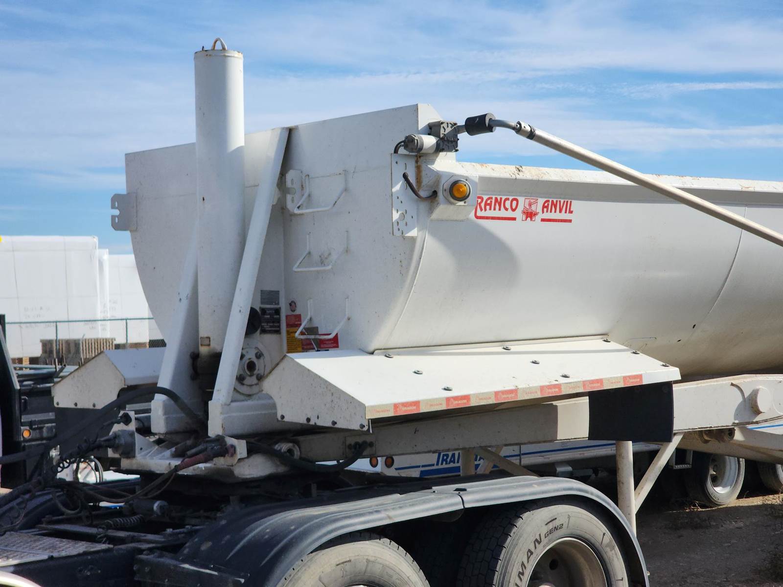 2022 Dragon Ranco 36-foot ED-36-3 Tri Axle End Dump Trailer, Half round steel body, Hydraulic Top Hinge Lift gate. Air gate latch. Electric Tarp. 36’-10” Box Length, 102” wide, 9’ tall. Quarter Frame Trailer. Steel wheels. Each axle rating 20,000 lbs. GVWR 70,000 lbs. 11Rx22.5 Tires. Rubber 70%. Steel Spring Suspension. Lift axle. Custom Hoist Lift Cylinder, 2,000 psi pressure. Model 85-4499-265. Call for more information and video.