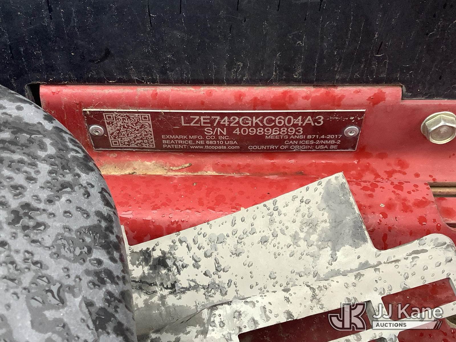 2022 Exmark E-Series Zero Turn Riding Mower, s/n 409896893, Hydrostatic, Gas, with 60" Deck, ROPS, (Conditions Unknown) (Battery Cables Missing) NOTE: This unit is being sold AS IS/WHERE IS via Timed Auction and is located in Phoenix, AZ. Inspection & preview days for this unit are the 2 business days prior to the first day of items closing for this auction, item is located at 2505 W Durango St Phoenix, AZ 85009 and hours of operations are 8a-4p. For pre-sale questions, please contact Andrew Espinoza @ (602) 393-8107. (Buyer is responsible for removal. Assistance by consignor or JJ Kane Auctions is not assured.)
