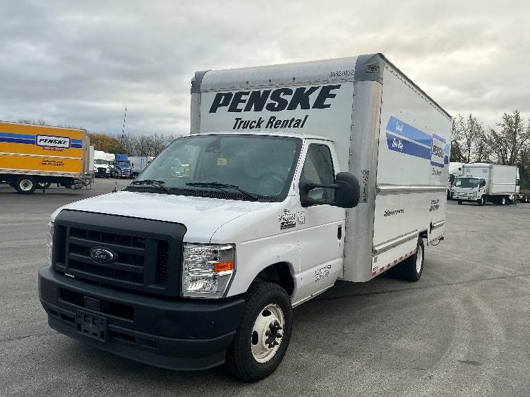 Used 2022 Ford E350 Box Truck with 305HP 7.3LV8 gasoline engine, 6-speed automatic transmission, single rear axle, 40-gallon fuel capacity,...