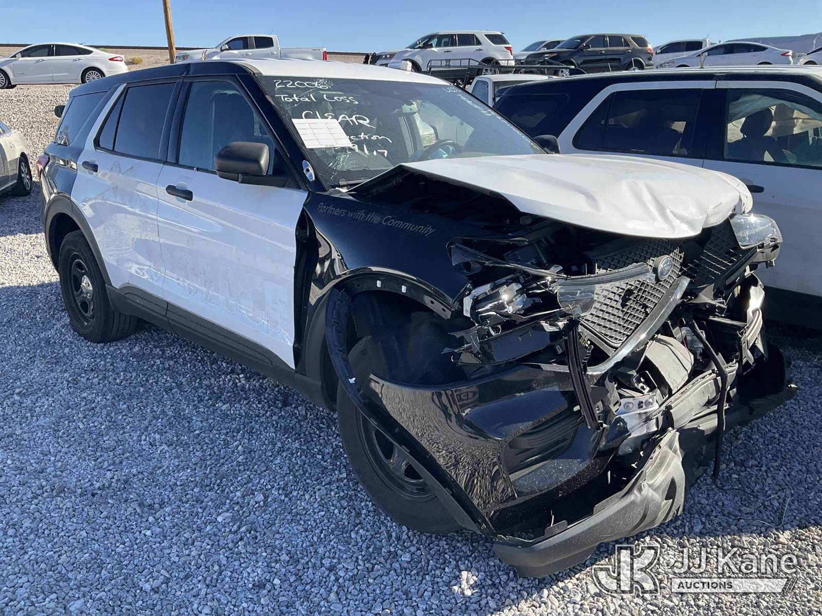 2022 Ford Explorer AWD Police Interceptor 4-Door Sport Utility Vehicle, 6-cyl gas, 10-Speed Automatic, A/C, True Mileage Unknown Totaled (Not Running, Condition Unknown, Wrecked) (Air Bags Deployed, Will Not Start) This is a Titled Item NOTE: This unit is being sold AS IS/WHERE IS via Timed Auction and is located in Las Vegas, NV. Inspection & preview days for this unit are the 2 business days prior to the first day of items closing for this auction, item is located at 14655 Grand Valley Pkwy Las Vegas, NV 89165 and hours of operations are 8a-4p. Titles executed exactly as bidder registered. Ensure your name and/or business name and address in JJ Kane and/or ProxiBid is correct before bidding. For pre-sale questions, please contact Office Staff @ (801) 519-0123 and provide sale date and lot number. Las Vegas Dealer License Number DLR000053086 / OHV000053094. (Buyer is responsible for removal. Assistance by consignor or JJ Kane Auctioneers is not assured.)