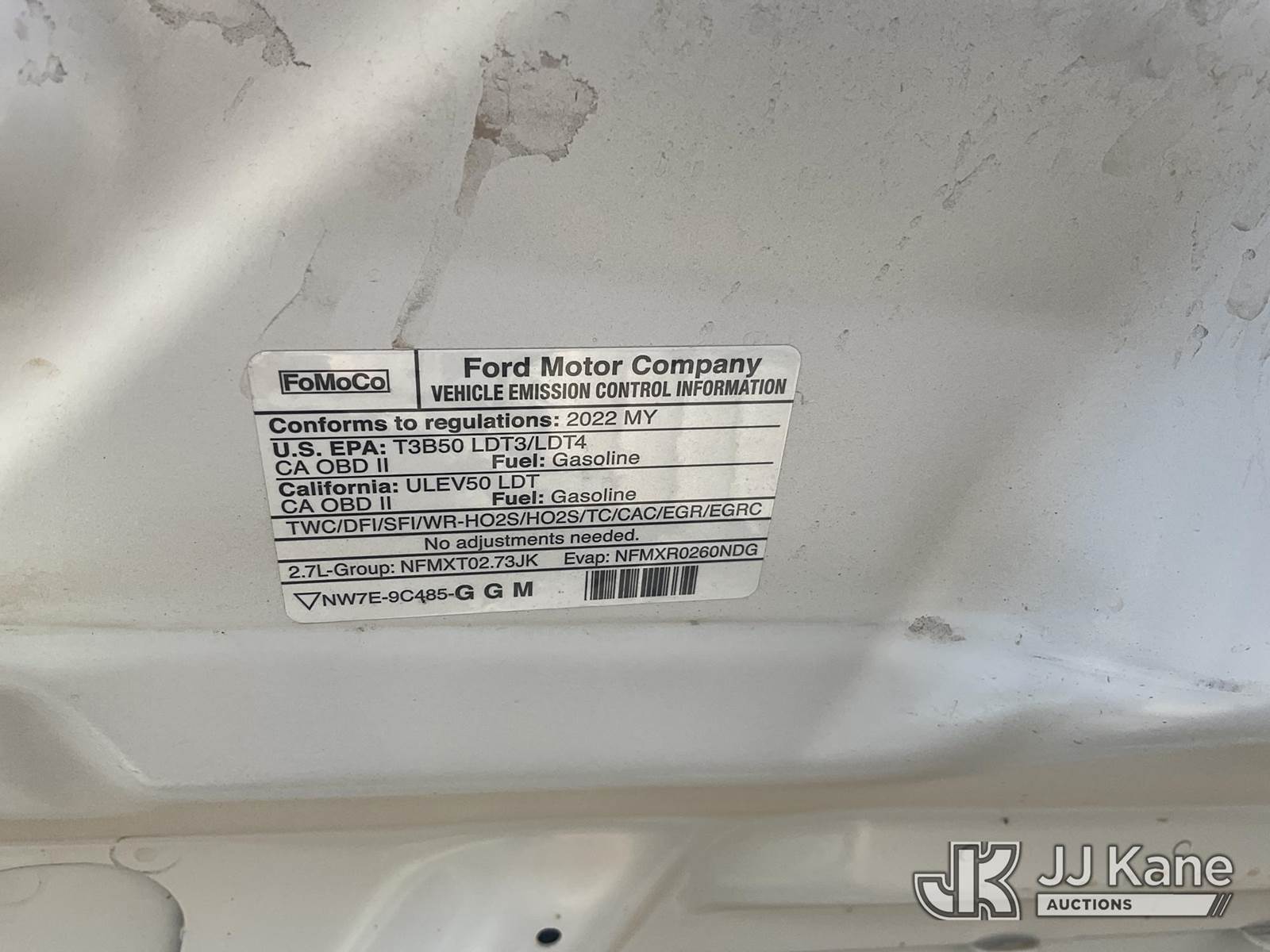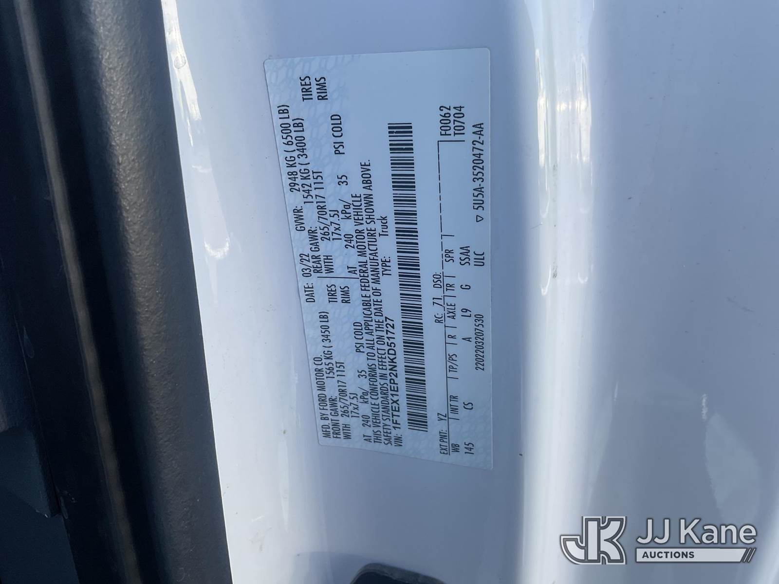 2022 Ford F-150 Extended-Cab Pickup Truck, 6-cyl gas, 4wd, 6-Speed Automatic, A/C, with fuel transfer tank, True Mileage Unknown (Not Running, Condition Unknown) (Seller States: battery is dead. Was running when parked) This is a Titled Item NOTE: This unit is being sold AS IS/WHERE IS via Timed Auction and is located in Yuma, AZ. For more information contact Austin Scott @ (816) 205-2291. Removal by appointment only, Buyer/Hauler must present copy of paid invoice or release form upon arrival. Purchaser acknowledges ALL lots must be removed within 10 business days of Auction, or a storage fee may be incurred. For load out and pick up information, please reference the release form sent out after purchase. (Buyer is responsible for removal. Assistance by consignor or JJ Kane Auctions is not assured). (Buyer is responsible for removal. Assistance by consignor or JJ Kane Auctions is not assured.)