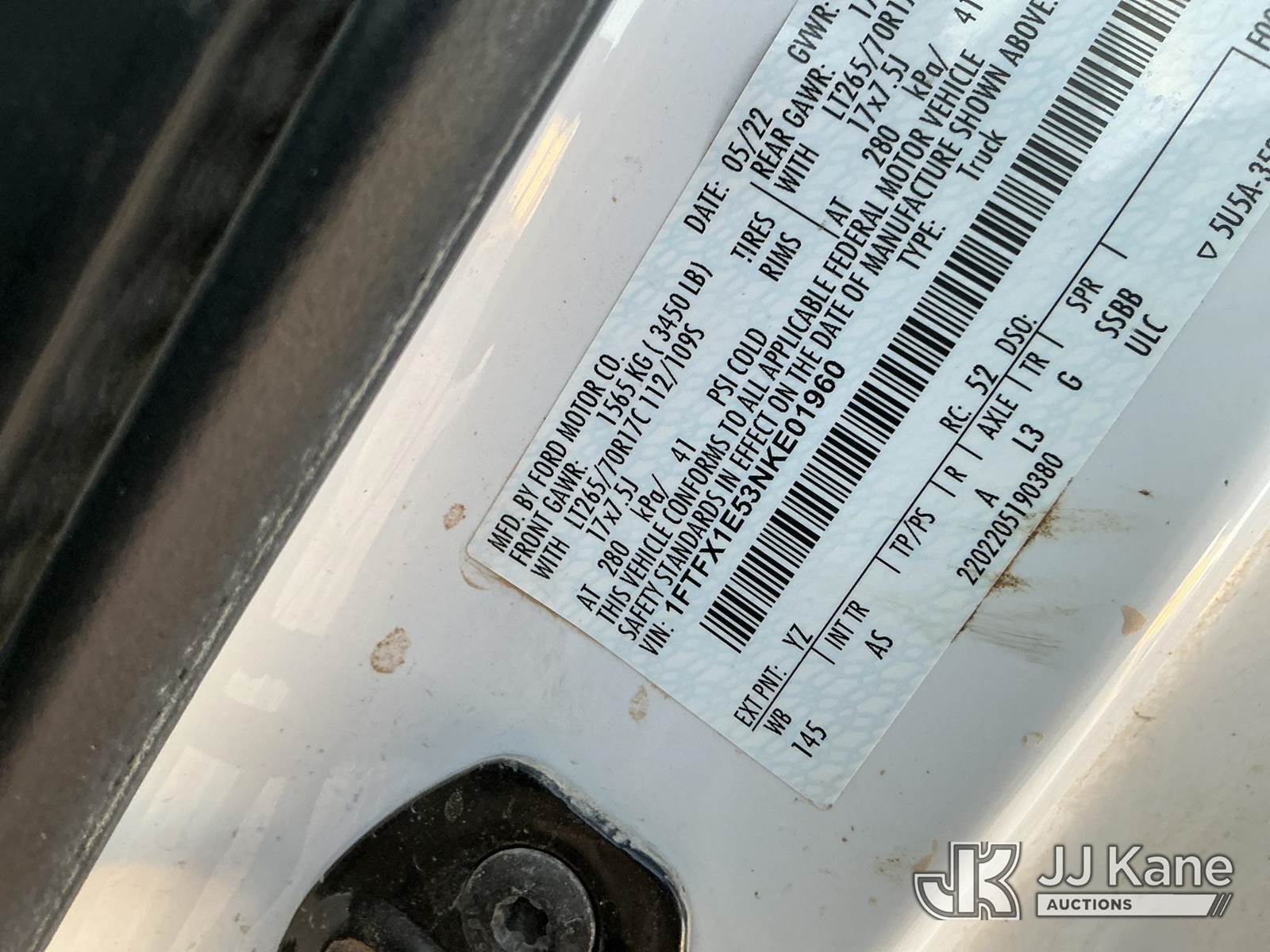 2022 Ford F-150 Extended-Cab Pickup Truck, 8-cyl gas, 4WD, 6-Speed Automatic, A/C, with Bed Mounted Toolbox , (64,411 miles) (Runs & Moves) (Windshield Is Cracked, Driver Side Mirror Assembly Is Damaged, Hood Is Damaged Has Dents, Body Has Paint Chipped) (Reads 5,074 hours) This is a Titled Item NOTE: This unit is being sold AS IS/WHERE IS via Timed Auction and is located in Midland, TX. For pre-sale questions please call EJ Brown at (915) 341-2565. (Buyer is responsible for removal. Assistance by consignor or JJ Kane Auctions is not assured.)