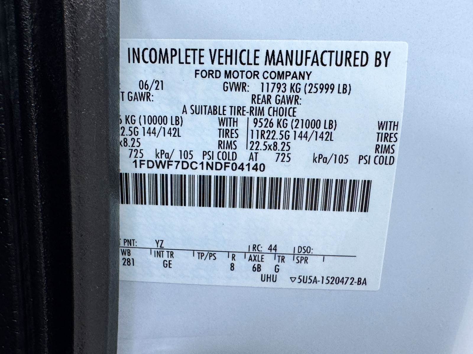VIN: 1FDWF7DC1NDF04140