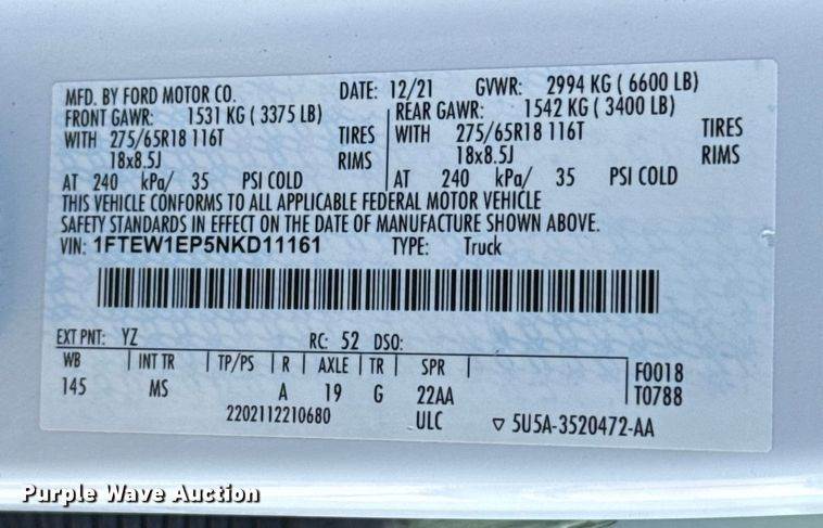 VIN: 1FTEW1EP5NKD11161