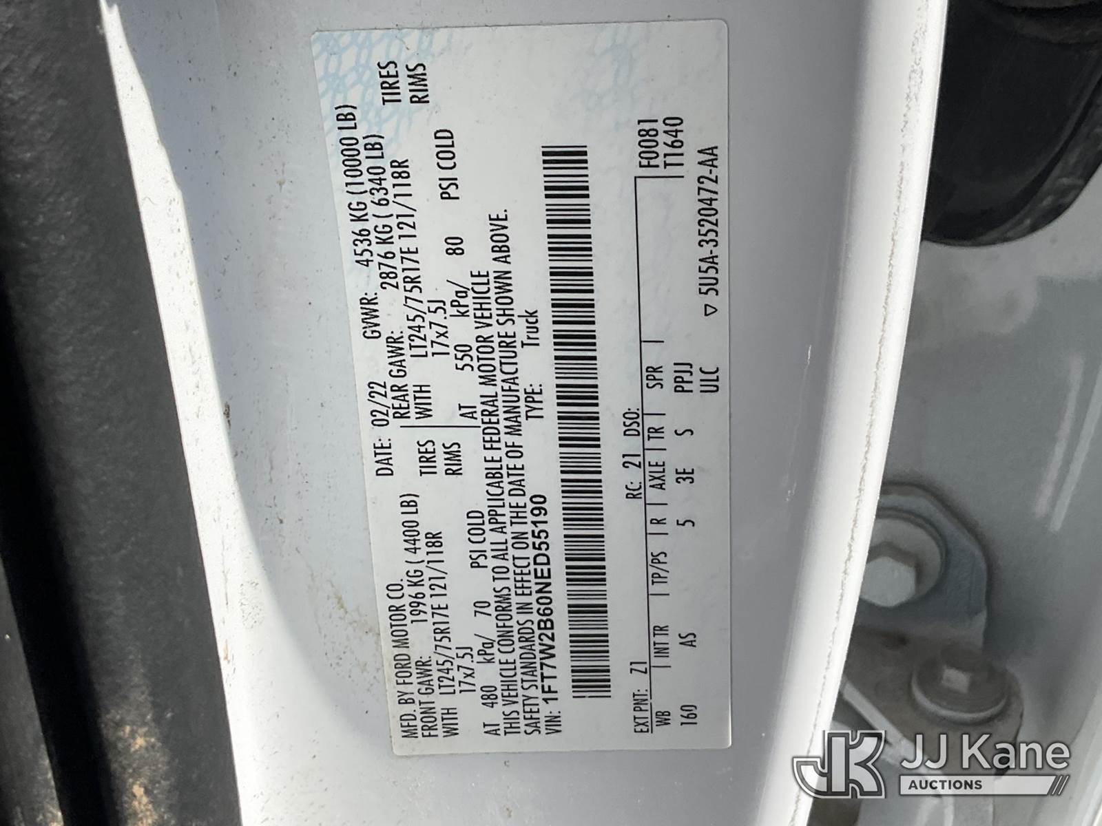 2022 Ford F250 4x4 Crew-Cab Pickup Truck, 8-cyl gas, Auto, A/C, (61,988 miles) (Not Running, Condition Unknown) This is a Titled Item NOTE: This unit is being sold AS IS/WHERE IS via Timed Auction and is located in China Grove, NC. Inspection & preview days for this unit are the 2 business days prior to the first day of items closing for this auction, item is located at 820 E NC Hwy 152 China Grove, NC 28023 and hours of operations are 8a-4p. For pre-sale questions, please contact Office Staff @ (704) 674-1113. (Buyer is responsible for removal. Assistance by consignor or JJ Kane Auctioneers is not assured.)