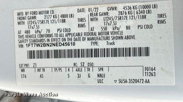 VIN: 1FT7W2BN2NED45610