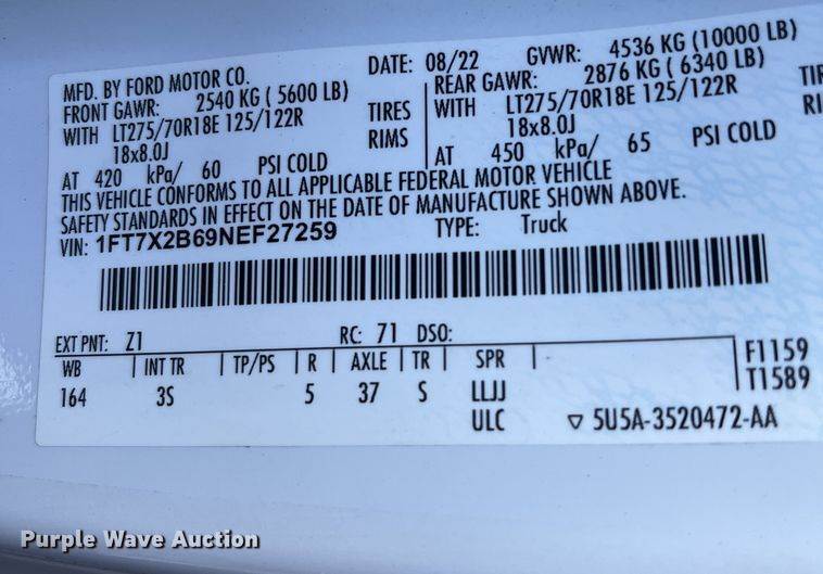 VIN: 1FT7X2B69NEF27259