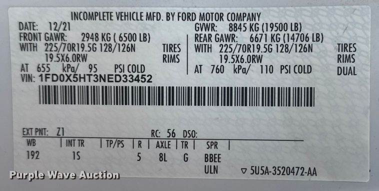 VIN: 1FD0X5HT3NED33452